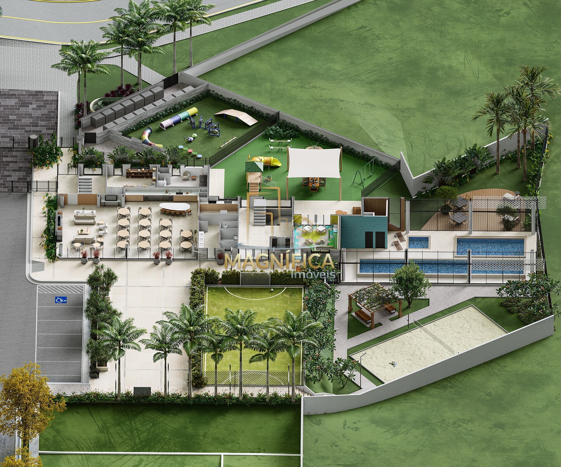 Condomínio planejado com infraestrutura completa e foco no bem-estar.
