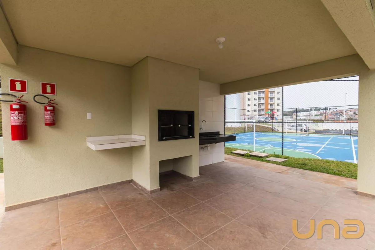 Condomínio completo com salão de festas, quiosque, piscina, área pet e elevador.