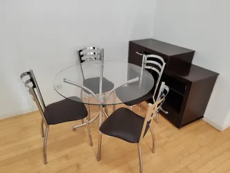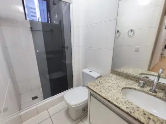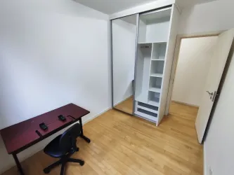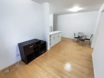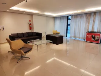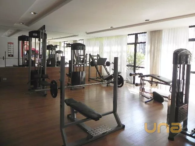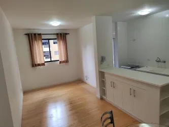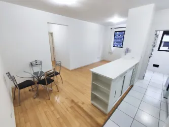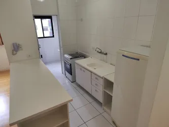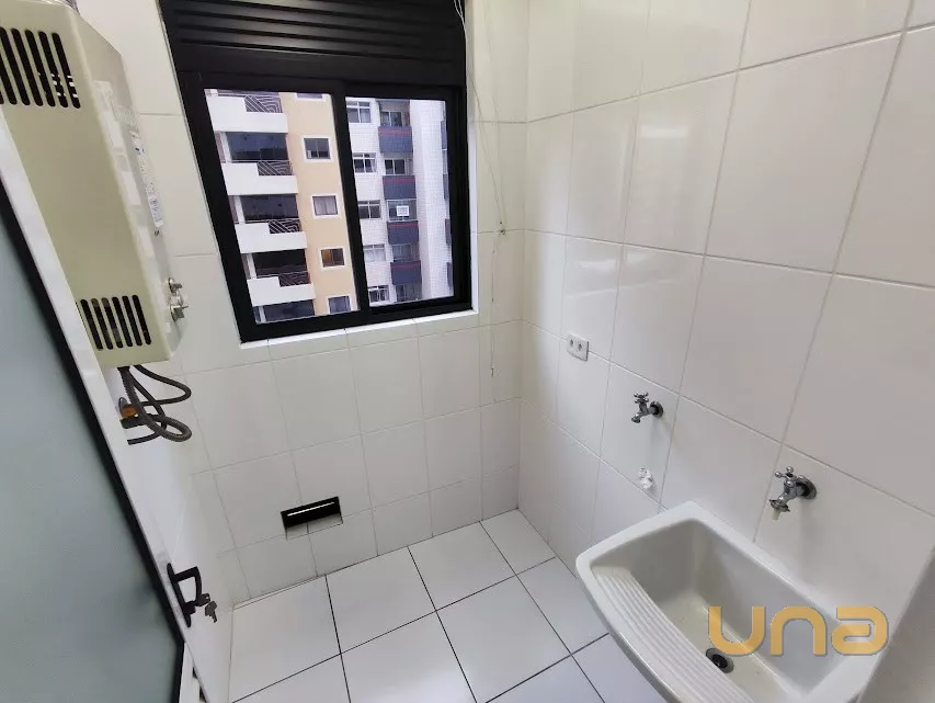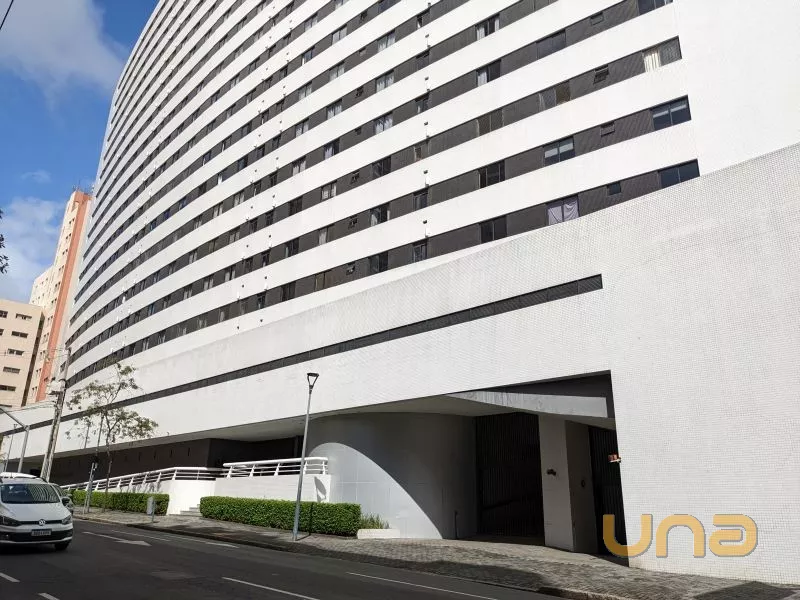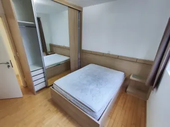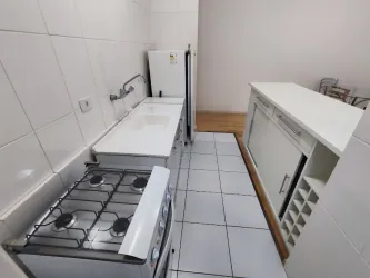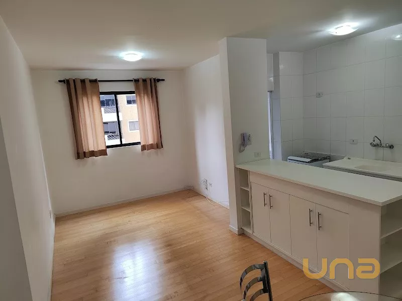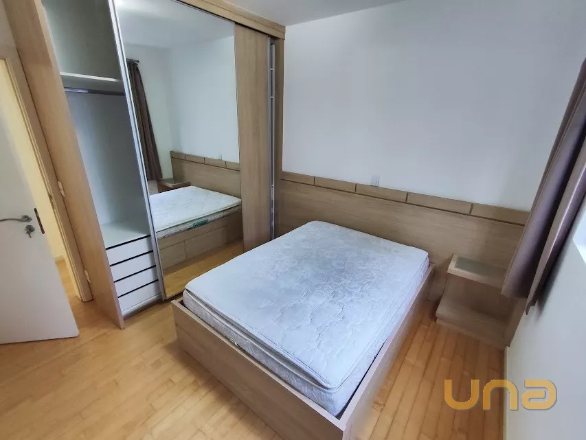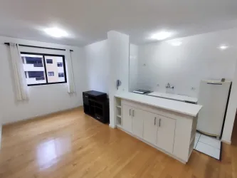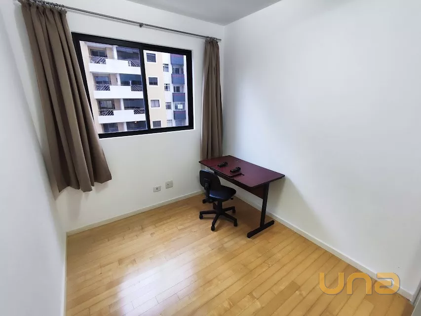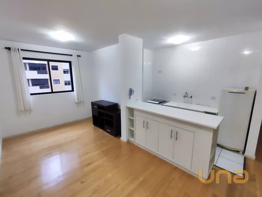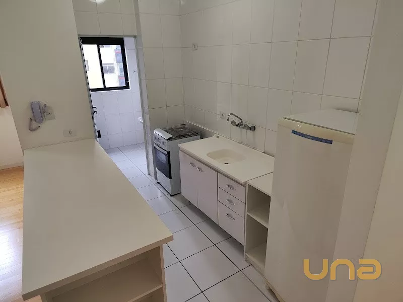 Excelente localização a meia quadra do shooping Curitiba - Semi mobiliado: sala com mesa e cadeiras, balcão - cozinha com refrigerador, fogão a gás, pia com gabinete e bancada com armário - dormitórios com armários, uma cama de casal com colchão