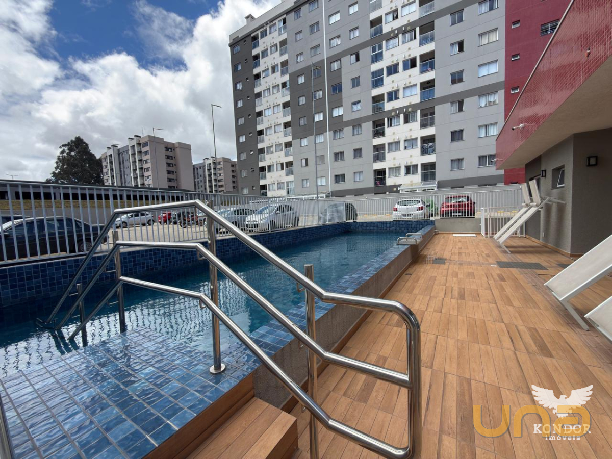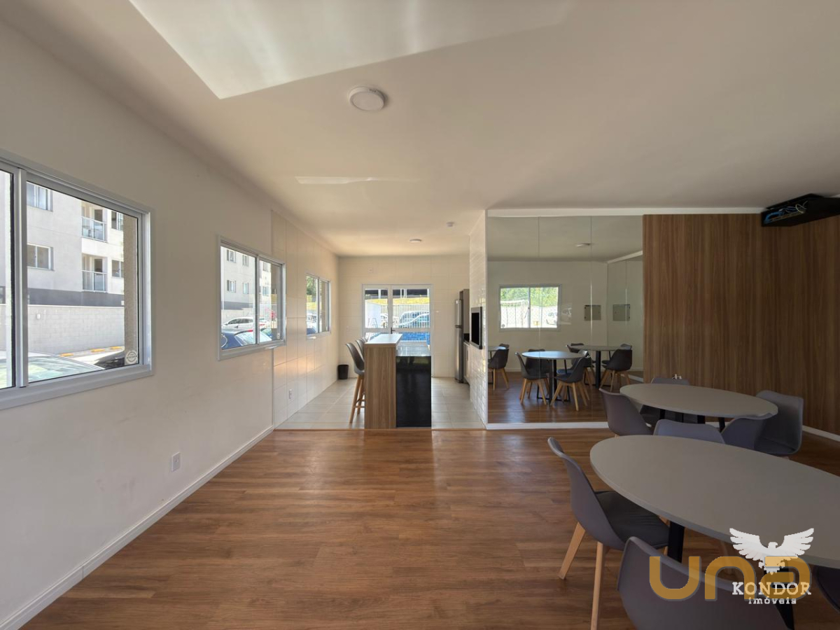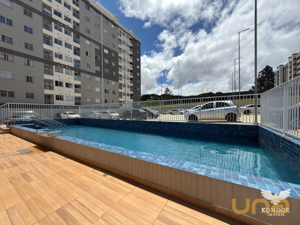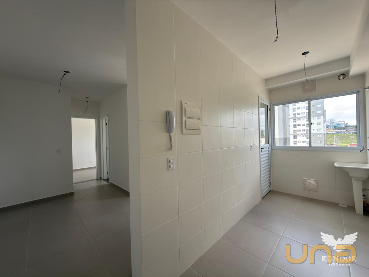Apartamento para locação – 2 quartos, sala, cozinha com área de serviço, sacada com churrasqueira, e 1 vaga de estacionamento.