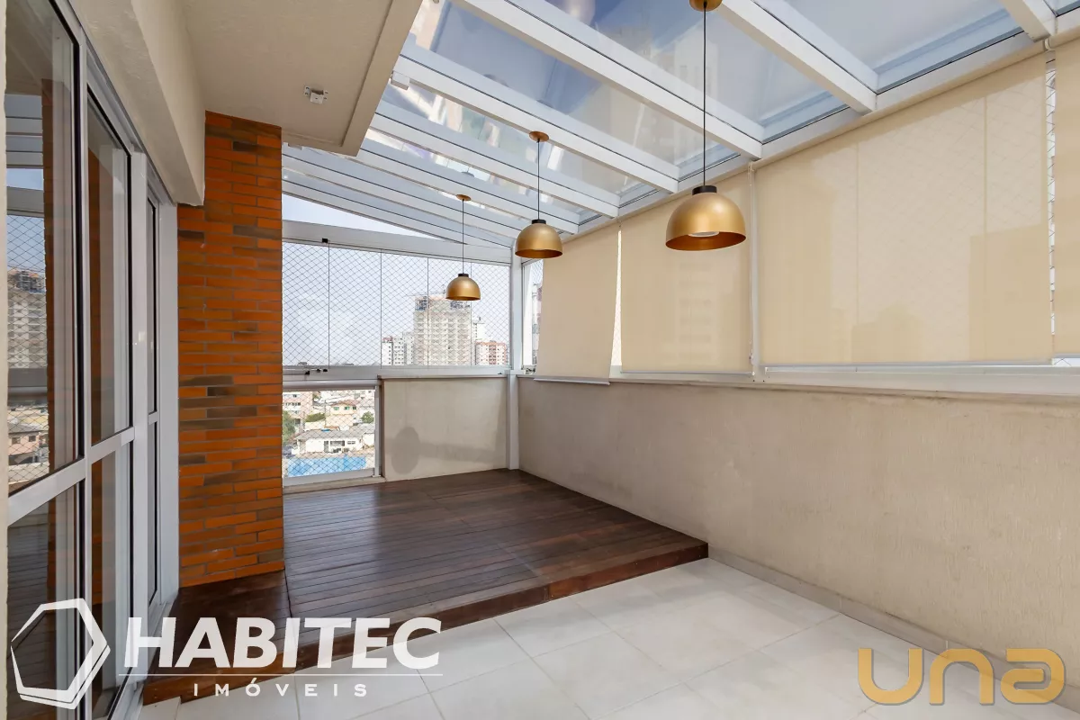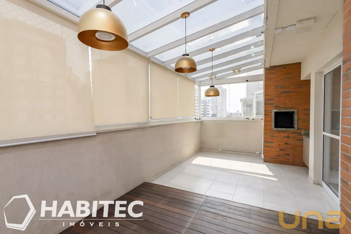 Sala para 02 ambientes com lavabo e sacada, terraço coberto com churrasqueira com sistema Reike, cozinha com armários fogão