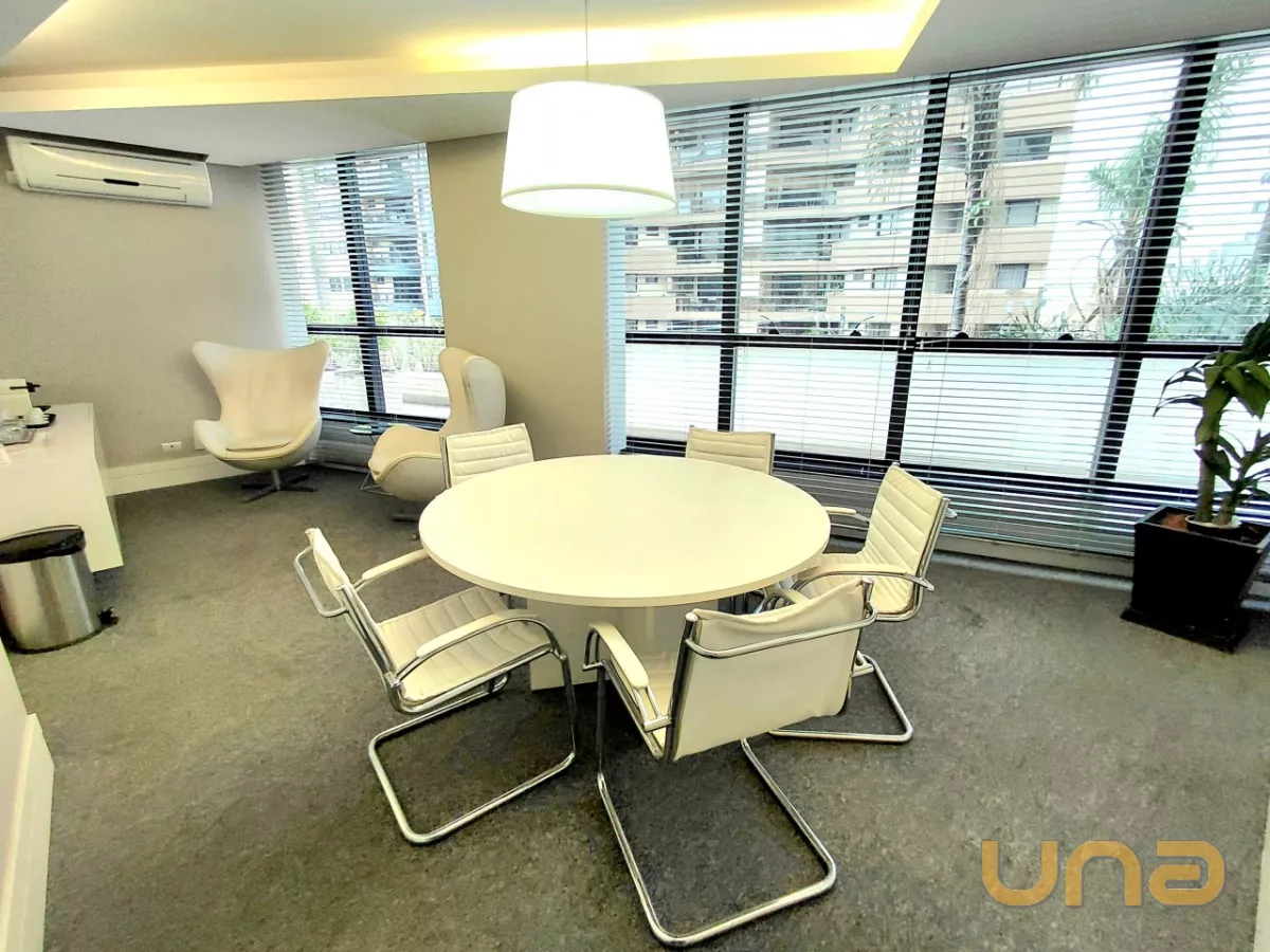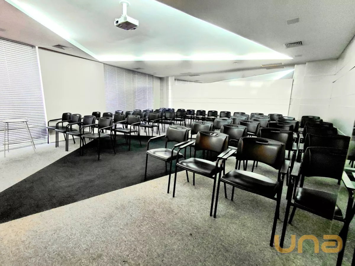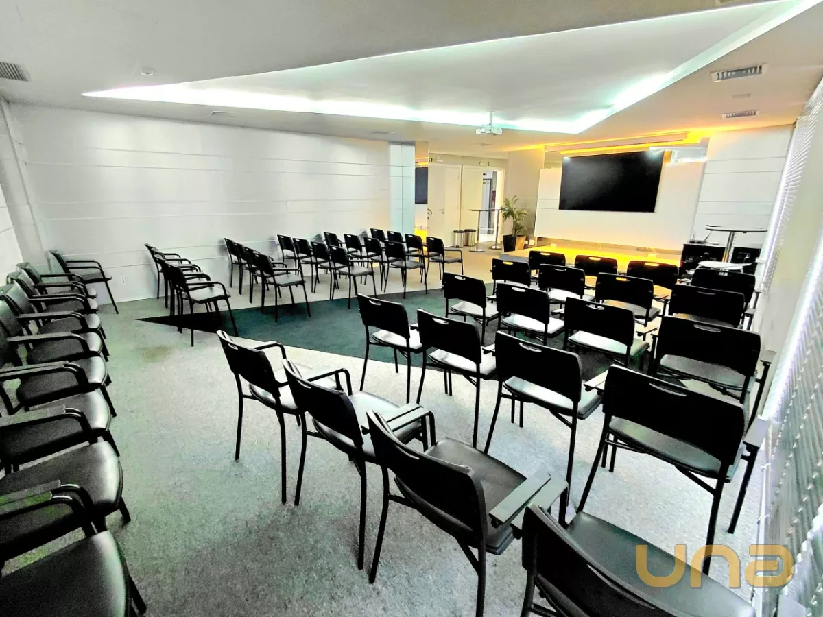 Detalhes: SALA COM 07 MESAS E CADEIRAS, ARMÁRIOS, MESA DE REUNIÃO, TV, FRIGOBAR / BWC SOCIAL COM BALCÃO E ARMÁRIO SUSPENSO / SACADA PRIVATIVA.