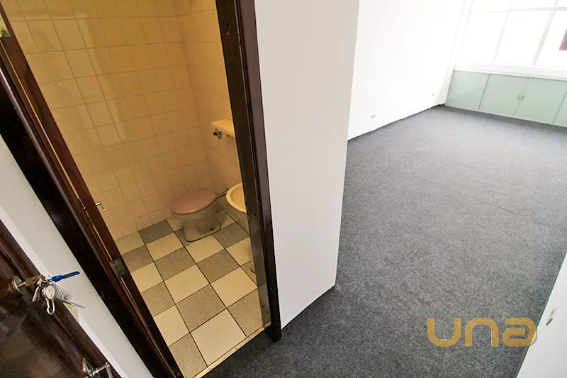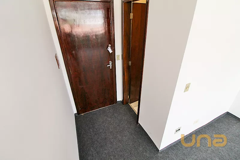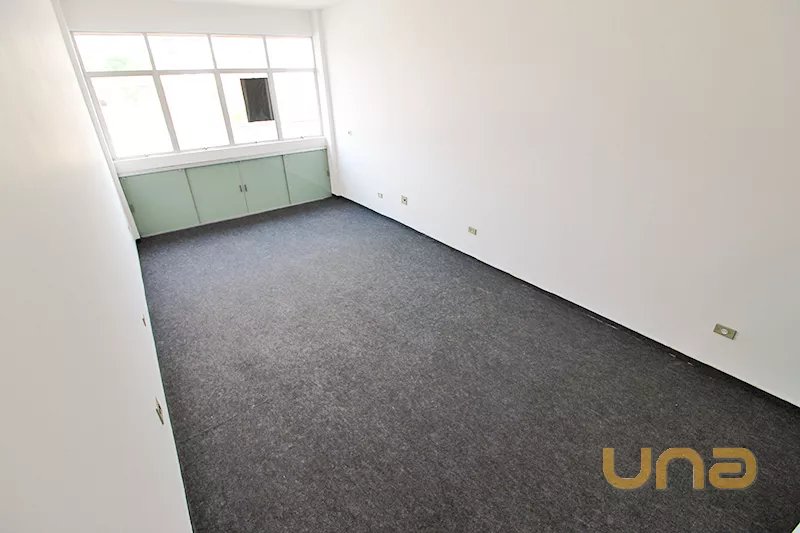 Sala ampla bem iluminada, spots, armário embutido, banheiro. Piso em carpet.