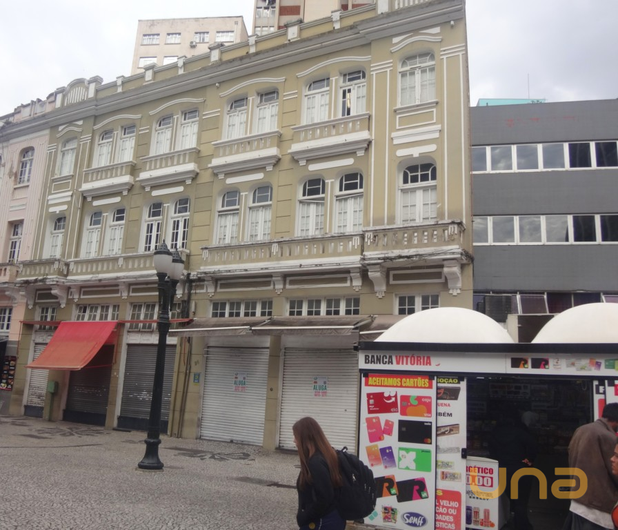 Imóvel em ótima localização, próximo ao Palácio Avenida, calçadão da XV, em frente ao bondinho local ponto turístico de Curitiba, 03 andares sendo piso térreo lâminado, parte dos fundos área aberta, 2° e 3° andar piso assoalho, 01 cozinha, 16 salas e 04 banheiros. Agende sua visita.