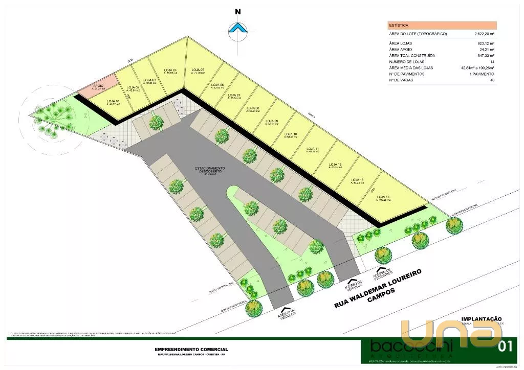 - Conceito Strip Mall: lojas em espaço aberto, com paisagismo moderno e integração ao bairro;