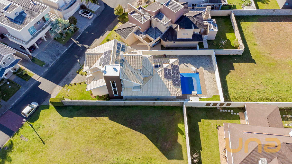 O imóvel dispõe de tomadas 110 e 220 volts, persianas automatizadas, ar condicionado, luzes de led, aquecimento de água por energia solar, recirculação de água quente, painel solar para geração de energia, cisterna para captação de água pluvial e reaproveitamento de água. Sistema de internet instalado somente contratar operadora. Espaço lateral com pergolado e espaço aberto para acesso a piscina.