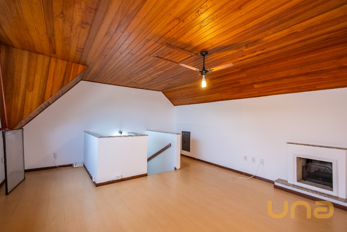 Sobrado com 118 m² de área construída, distribuídos em sala de estar para 2 ambientes, cozinha com armários, lavabo, 3 dormitórios, sendo 1 suíte com sacada e 2 quartos com armários, além de banheiro social e um amplo ático com lareira. O imóvel conta com um espaço versátil, ideal para área gourmet ou área de serviço, equipado com churrasqueira e teto retrátil. Na parte frontal, dispõe de 2 vagas de garagem, sendo 1 semidescoberta.