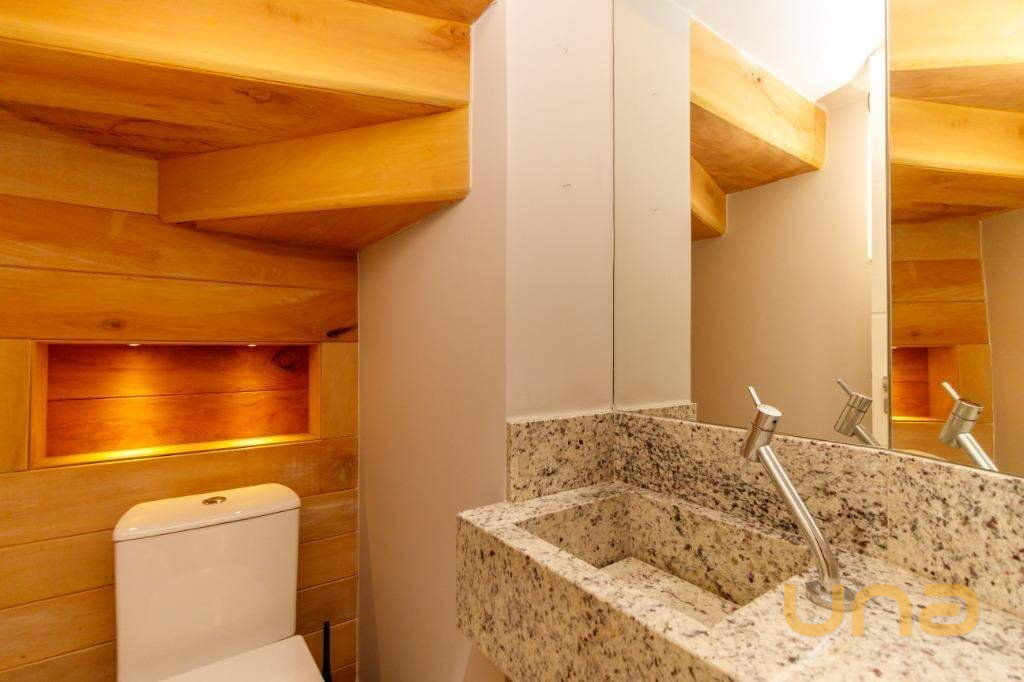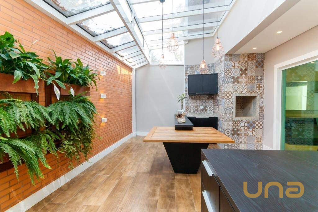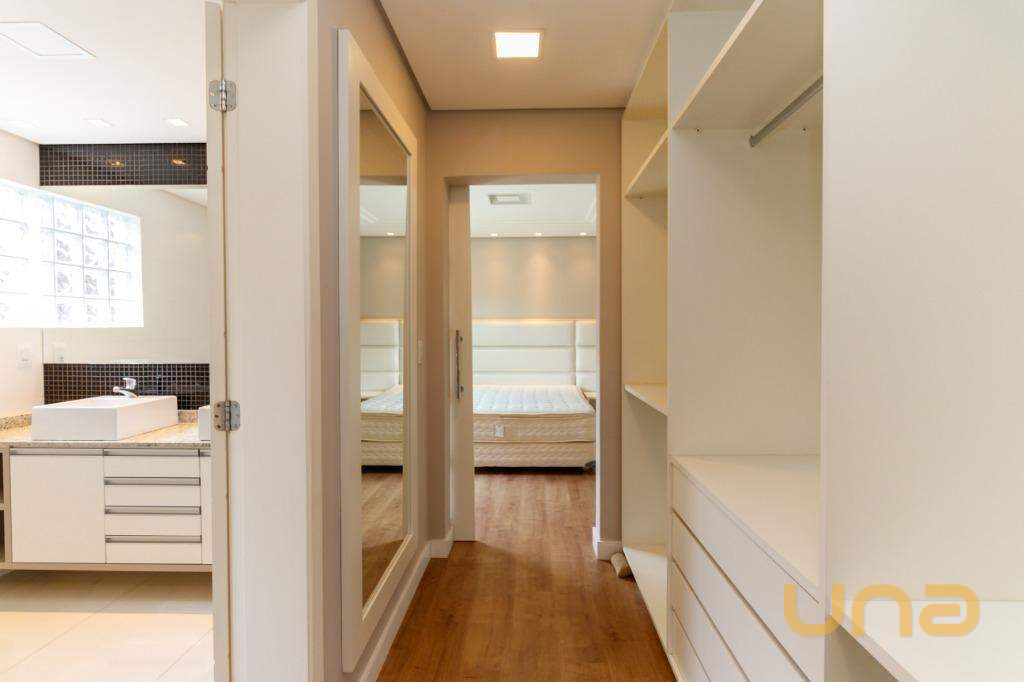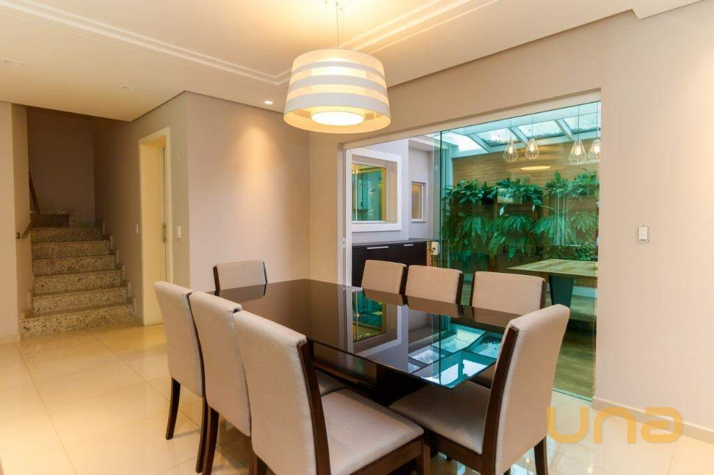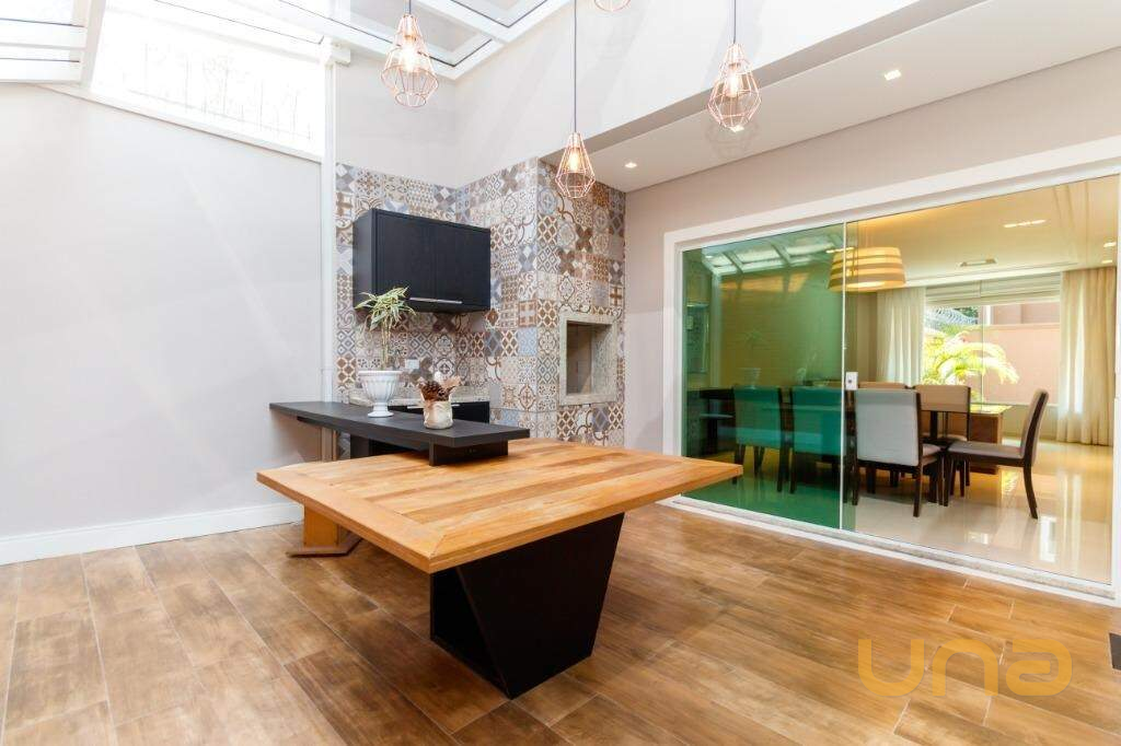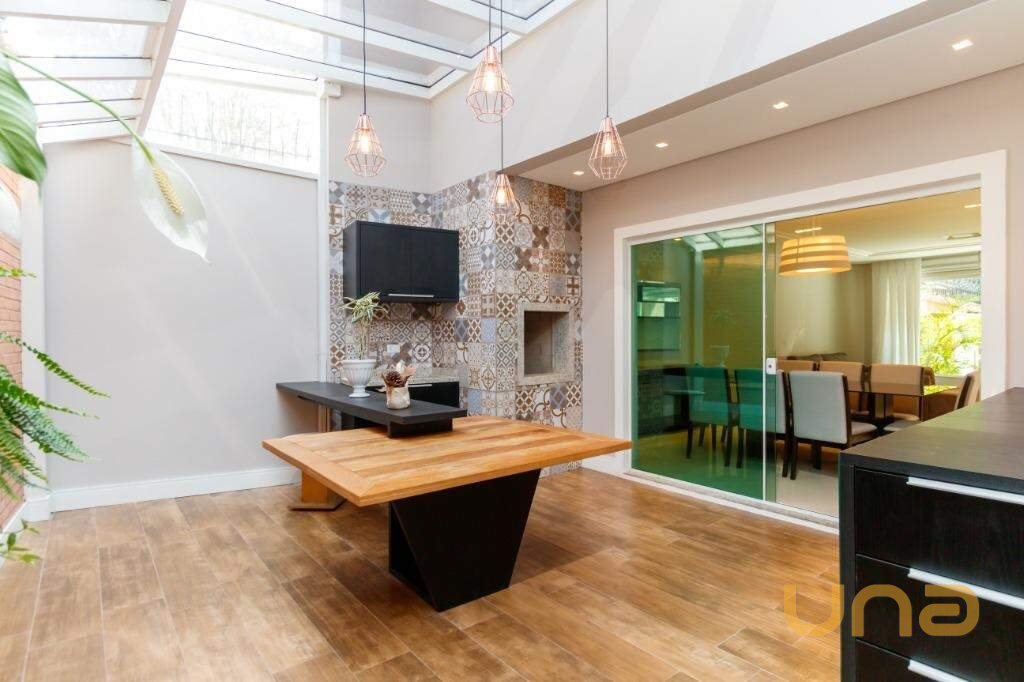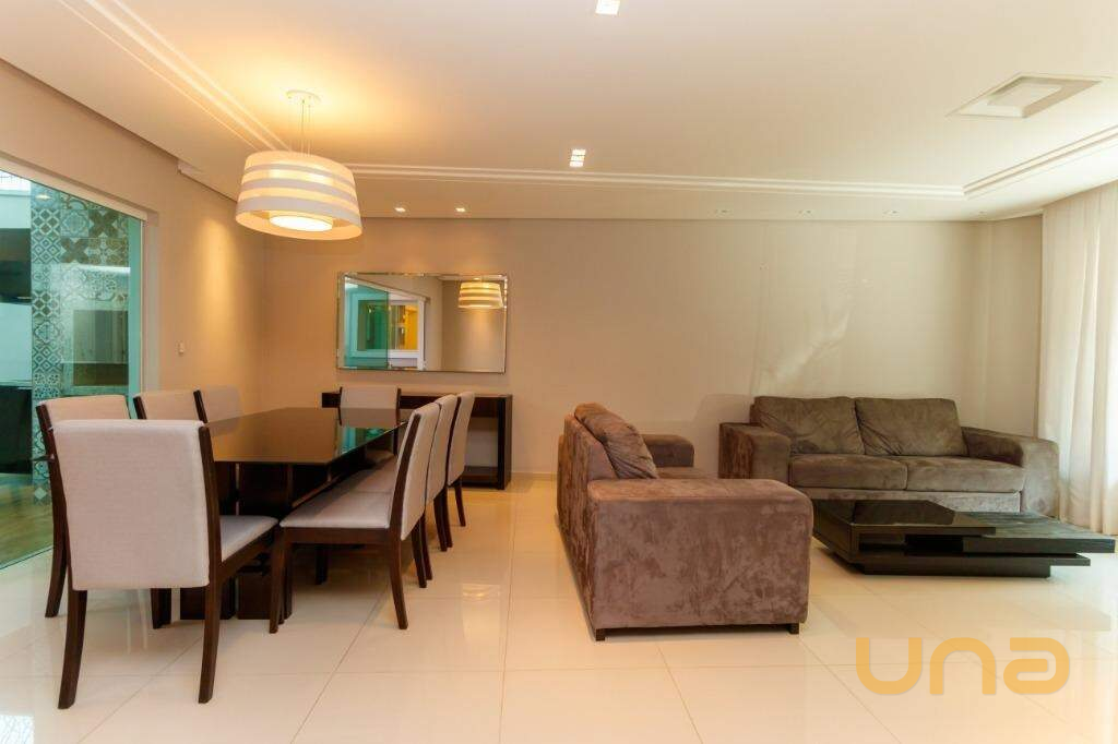 Este imóvel de alto padrão mobiliado oferece ambientes amplos, elegantes e funcionais. A residência conta com sala de visita para dois ambientes, sala de jantar e cozinha espaçosa equipada com armários planejados, cooktop, micro-ondas e forno embutido. Nos fundos, a área gourmet coberta com churrasqueira é perfeita para receber convidados, além de um lavabo que complementa o andar.