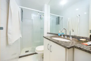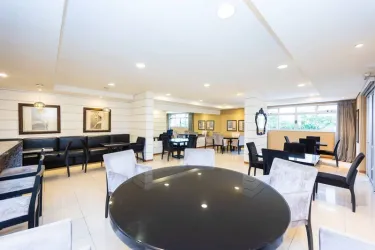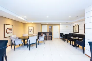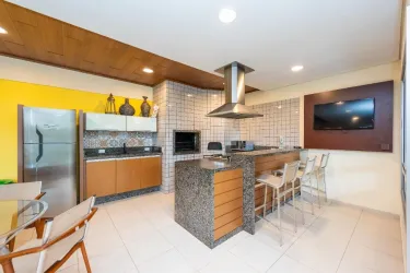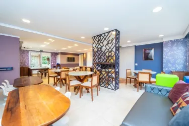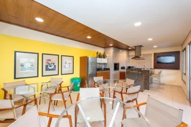 - Condomínio oferece uma completa área de lazer com salão de festas adulto e infantil decorados, churrasqueira, brinquedoteca, piscina adulto e infantil, sala de jogos, quadra de esportes, vending machine e academia, tudo isso em um ambiente seguro com portaria 24h.