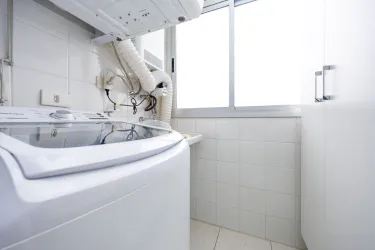 - Lavanderia integrada com cozinha com máquina de lavar roupas e armário;