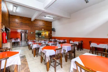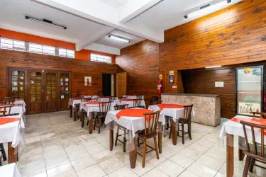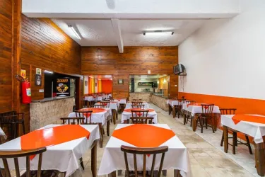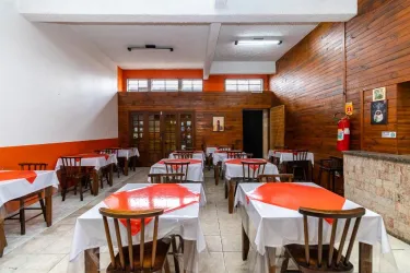 Pronta para abertura de restaurante com todos os utensílios, mesas e demais estruturas.
