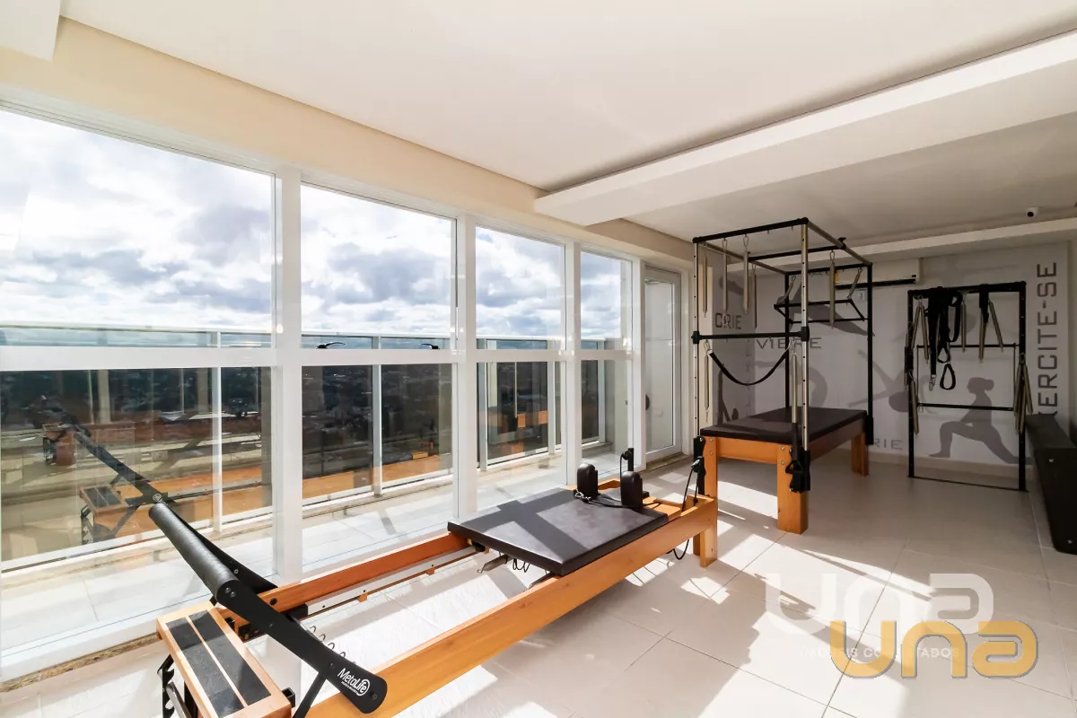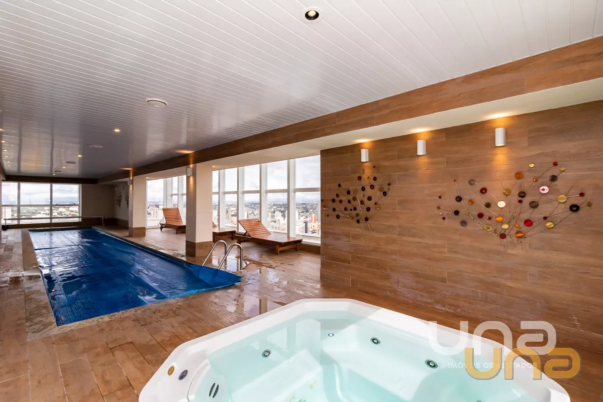 O condomínio oferece portaria 24 horas e estrutura de lazer completa, sendo espaço gourmet, salão de festas com terraço descoberto, piscina coberta e climatizada, espaço fitness, spa com vista de 360º da cidade, lavanderia, salão de jogos e cinema.
