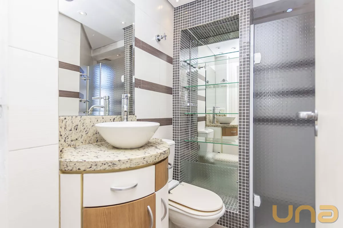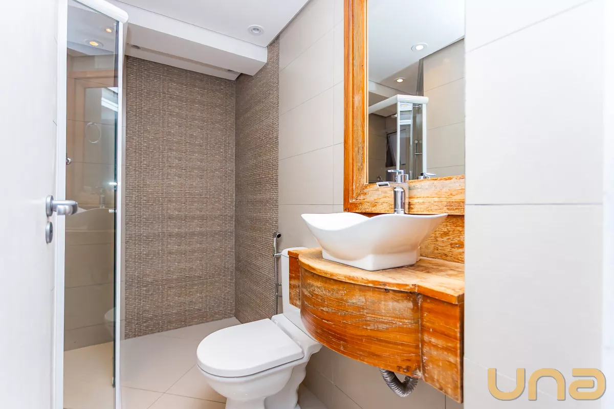 Piso laminado em perfeito estado,, luminárias, além de boxes em vidro temperado tanto na suíte quanto no banheiro social, e sistema de aquecimento a gás.