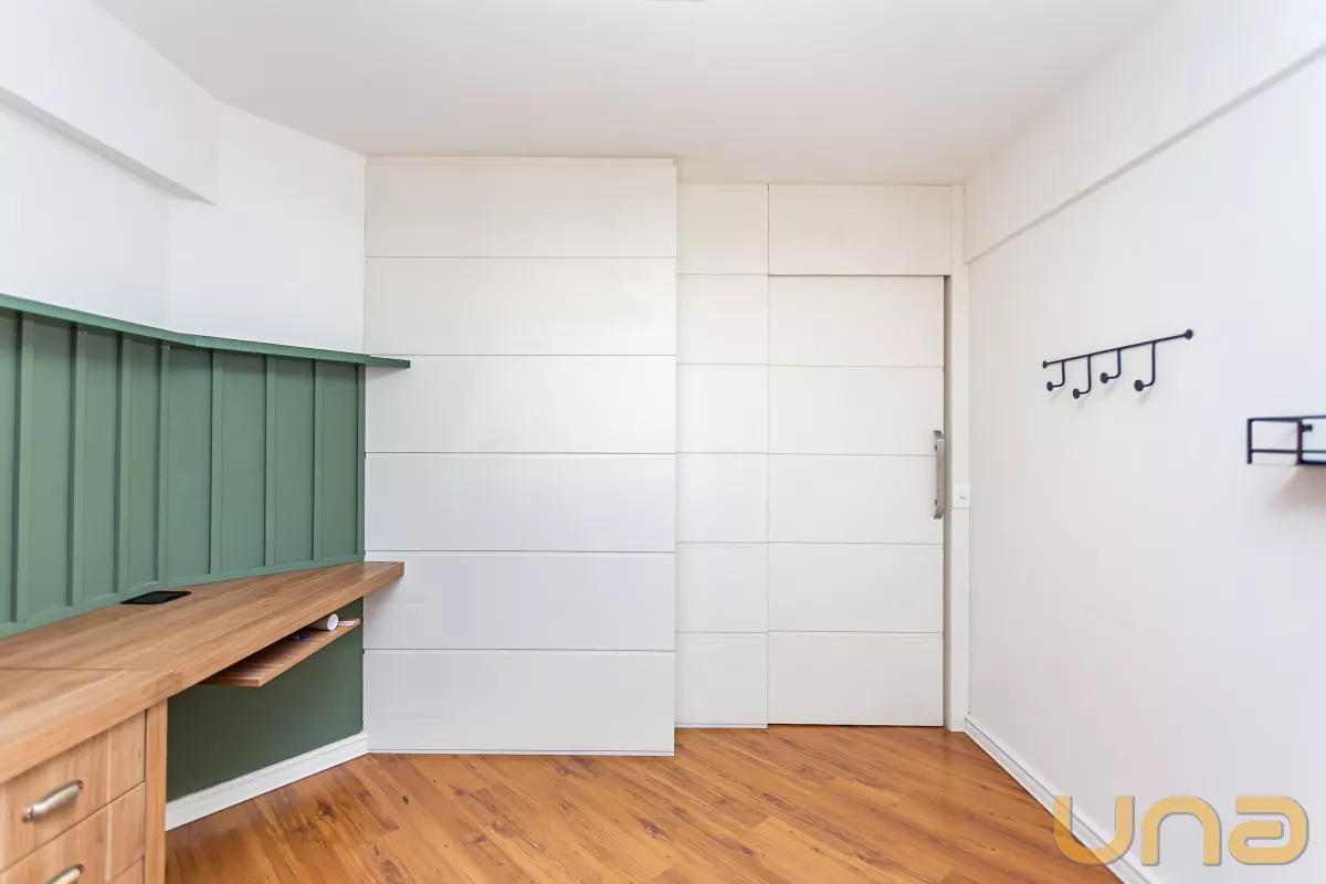 A área íntima é composta por 03 dormitórios, sendo 01 suíte com um amplo closet. Ambos os quartos contam com armários planejados, cortinas instaladas nas janelas e painéis prontos para receber TVs. A excelente iluminação natural valoriza ainda mais os espaços.