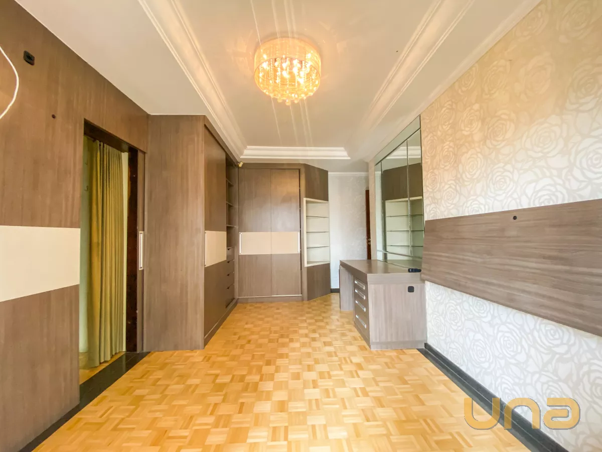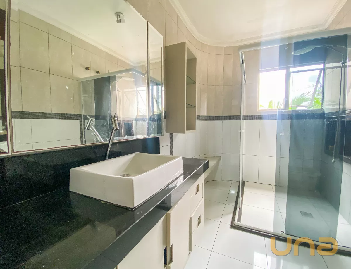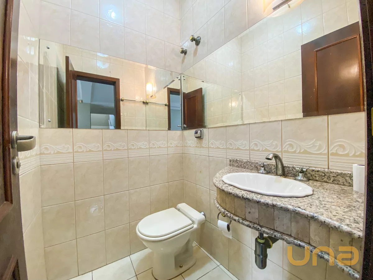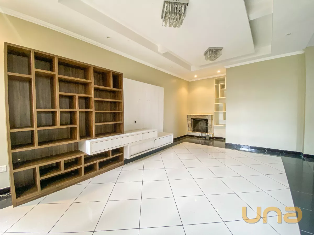 No térreo, fica localizada nos fundos. Possui uma sala para 03 ambientes com painel e rack para tv, lareira, cozinha completa com armários, fogão embutido e coifa, lavanderia com armários e aquecedor à gás e um lavabo.