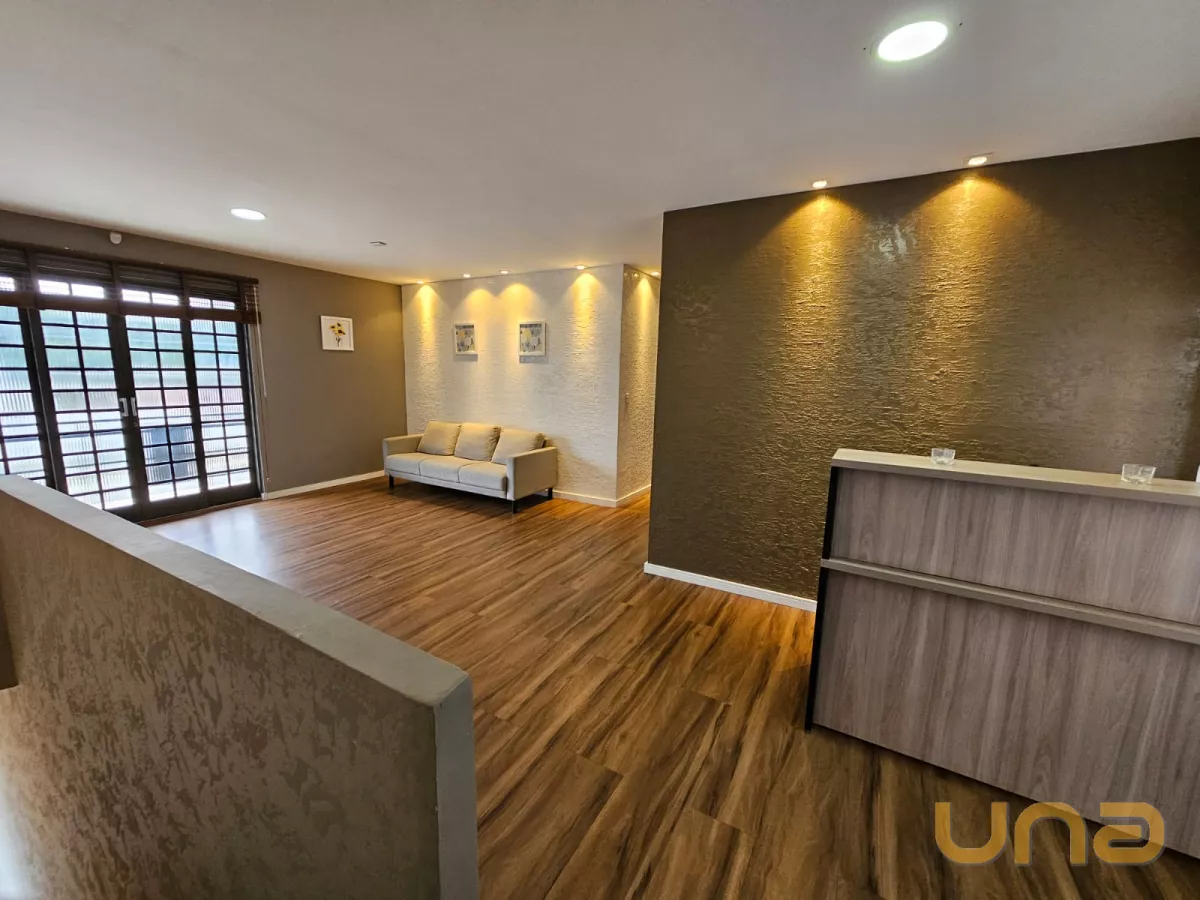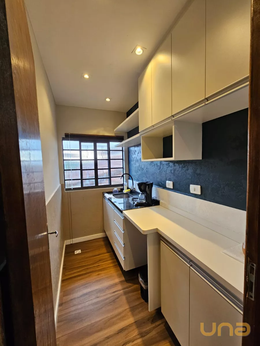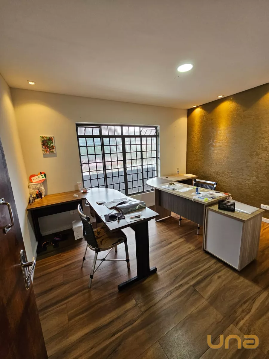 Sala comercial, sobreloja com 99,57m², na região de Santa Felicidade, com recepção, 04 salas, sendo uma com banheiro exclusivo, cozinha, banheiro social, sacada, vaga para 02 carros.