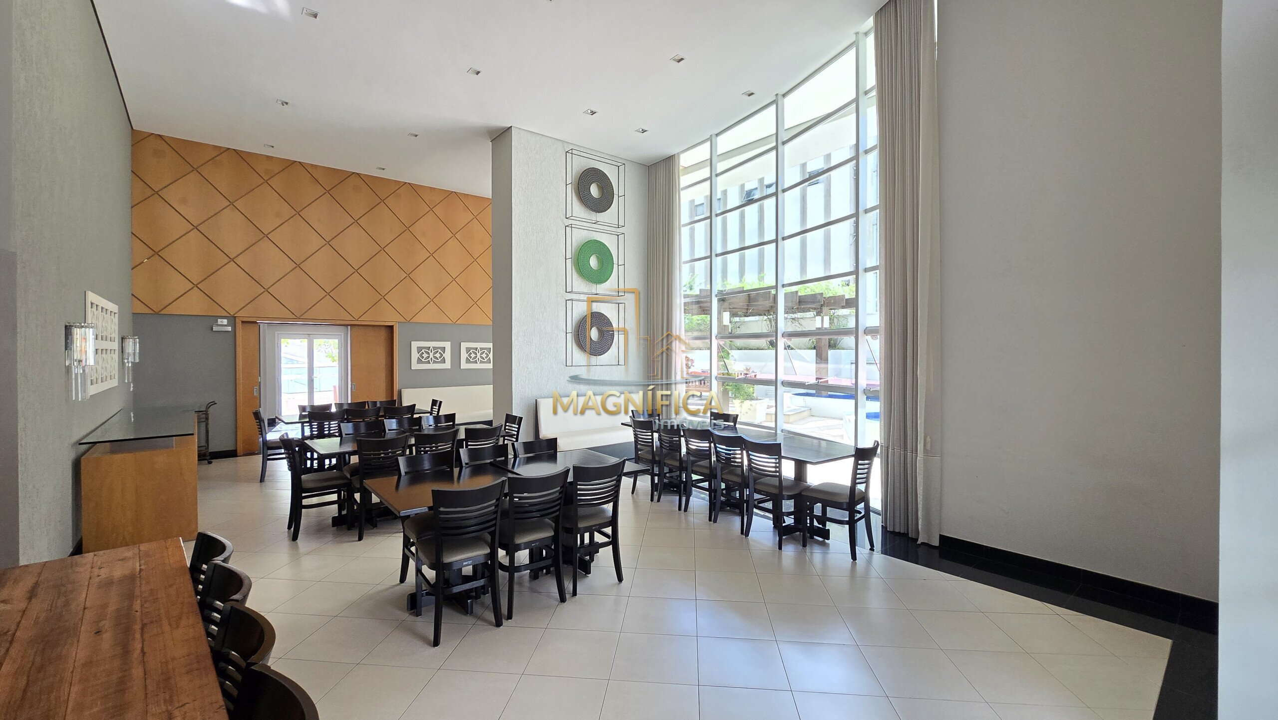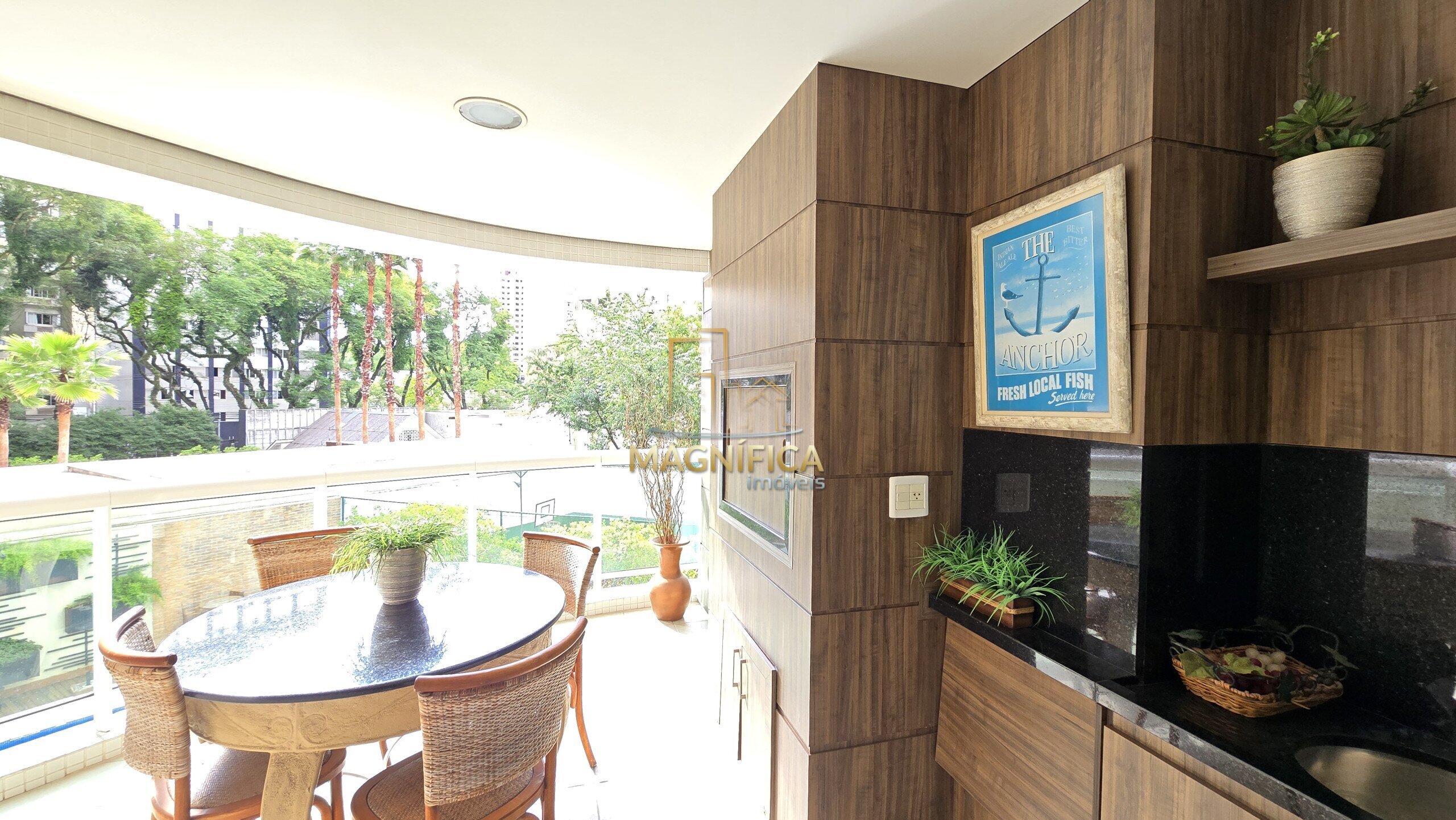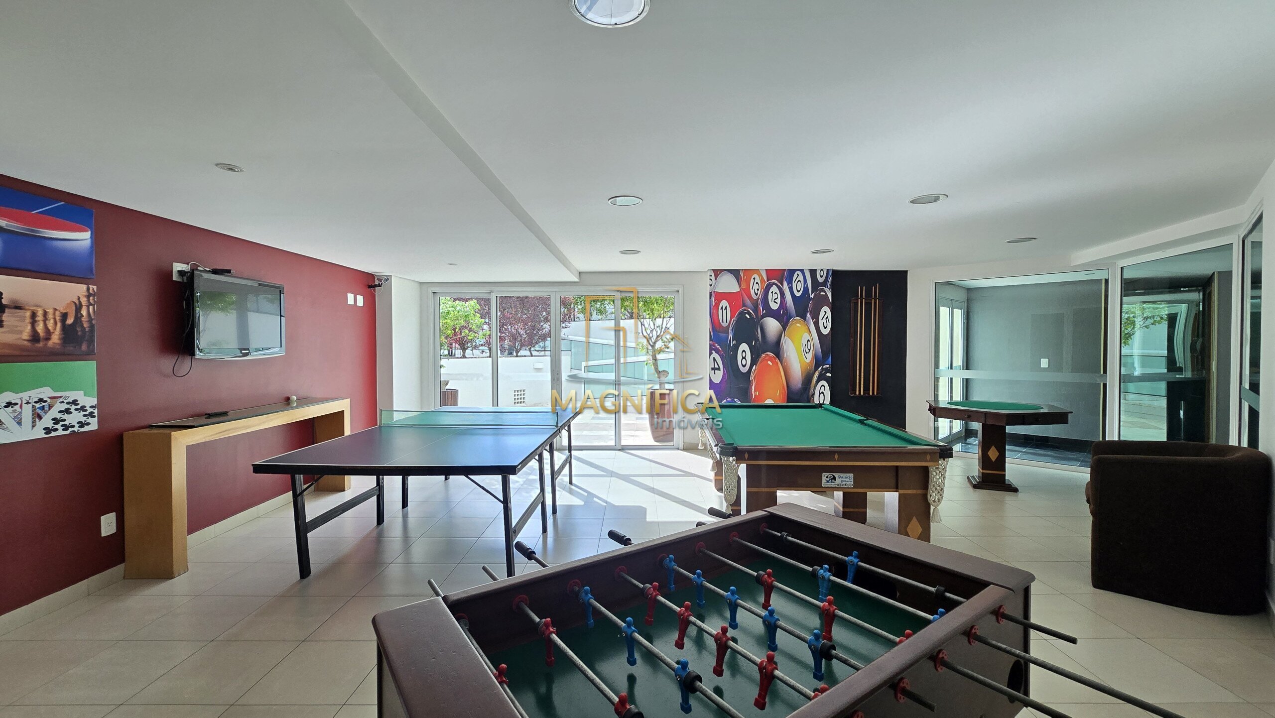 A área social é valorizada pela sacada com churrasqueira, voltada para o oeste, proporcionando uma vista definida e excelente iluminação natural no período da tarde. O imóvel conta também com duas vagas de garagem.