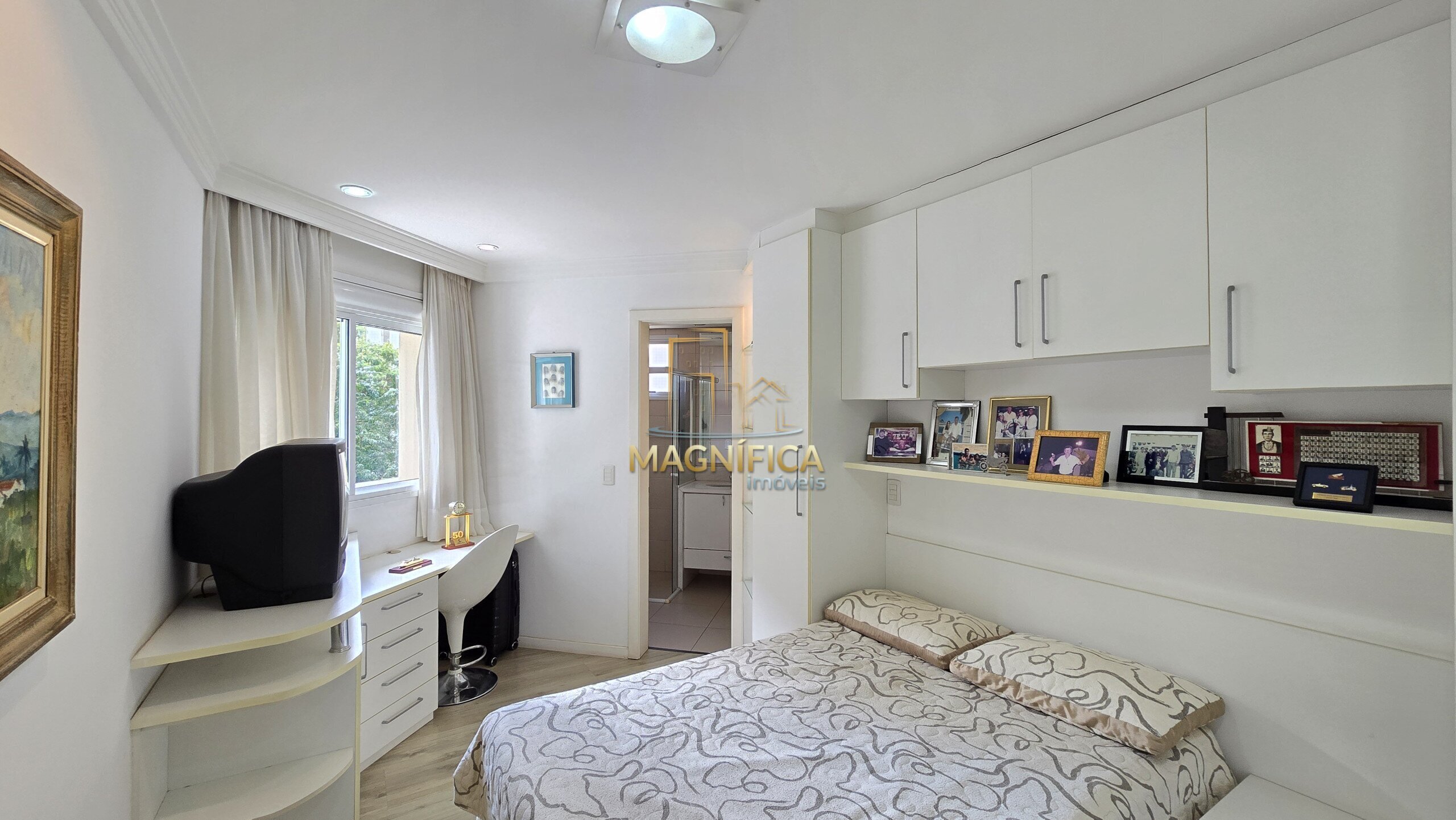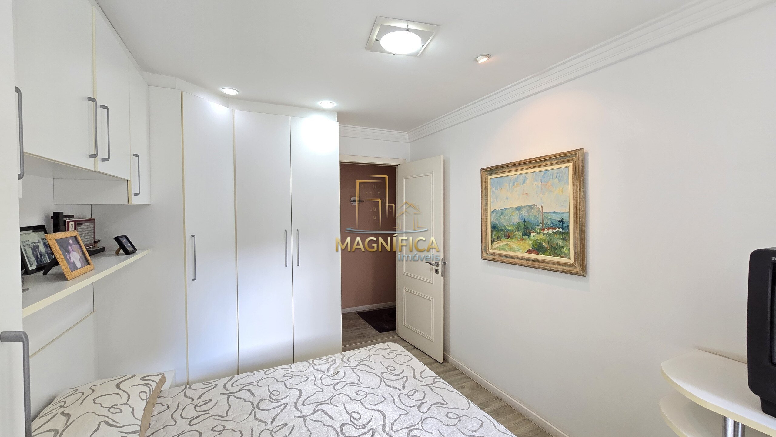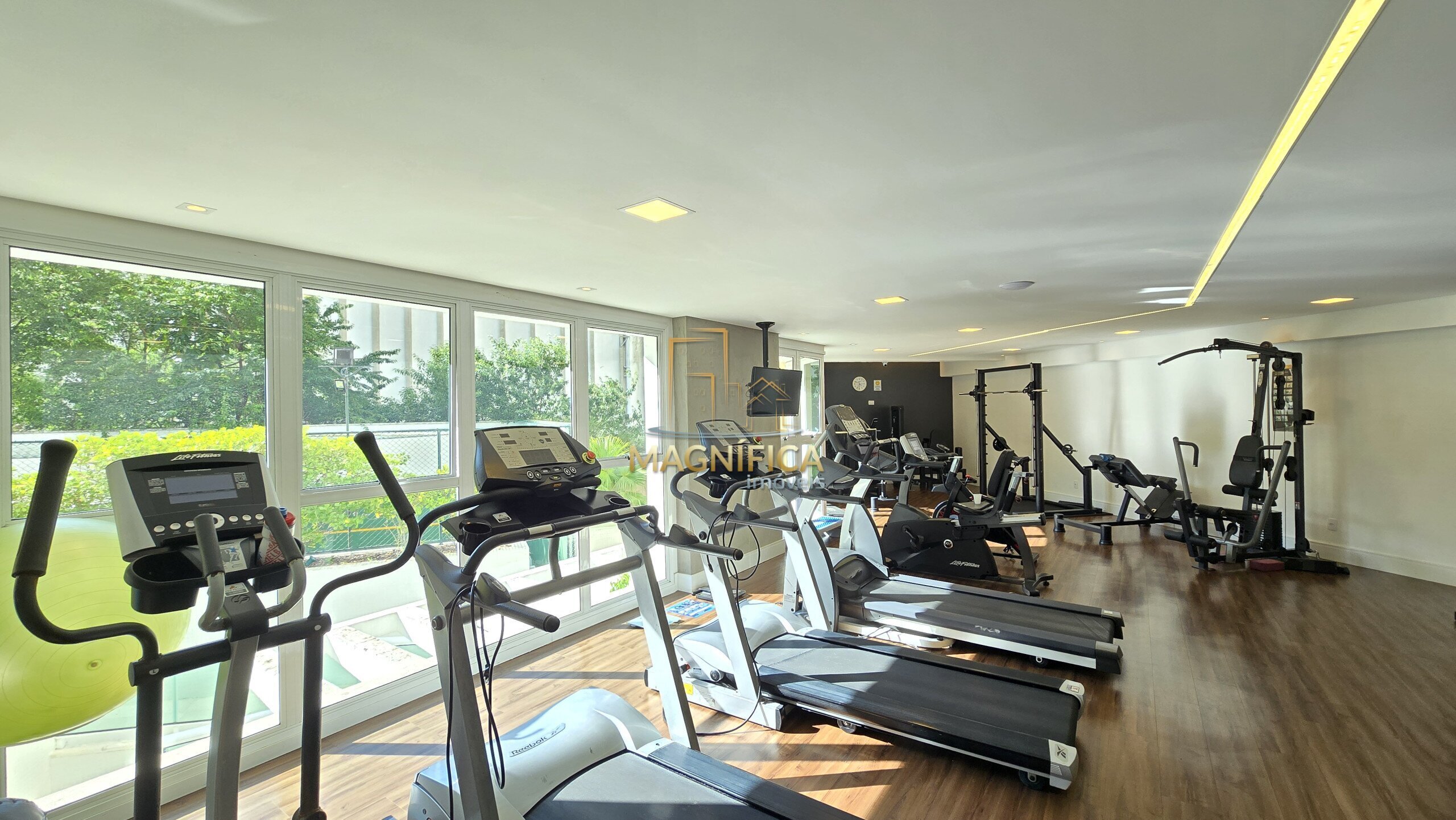 A área social é valorizada pela sacada com churrasqueira, voltada para o oeste, proporcionando uma vista definida e excelente iluminação natural no período da tarde. O imóvel conta também com duas vagas de garagem.