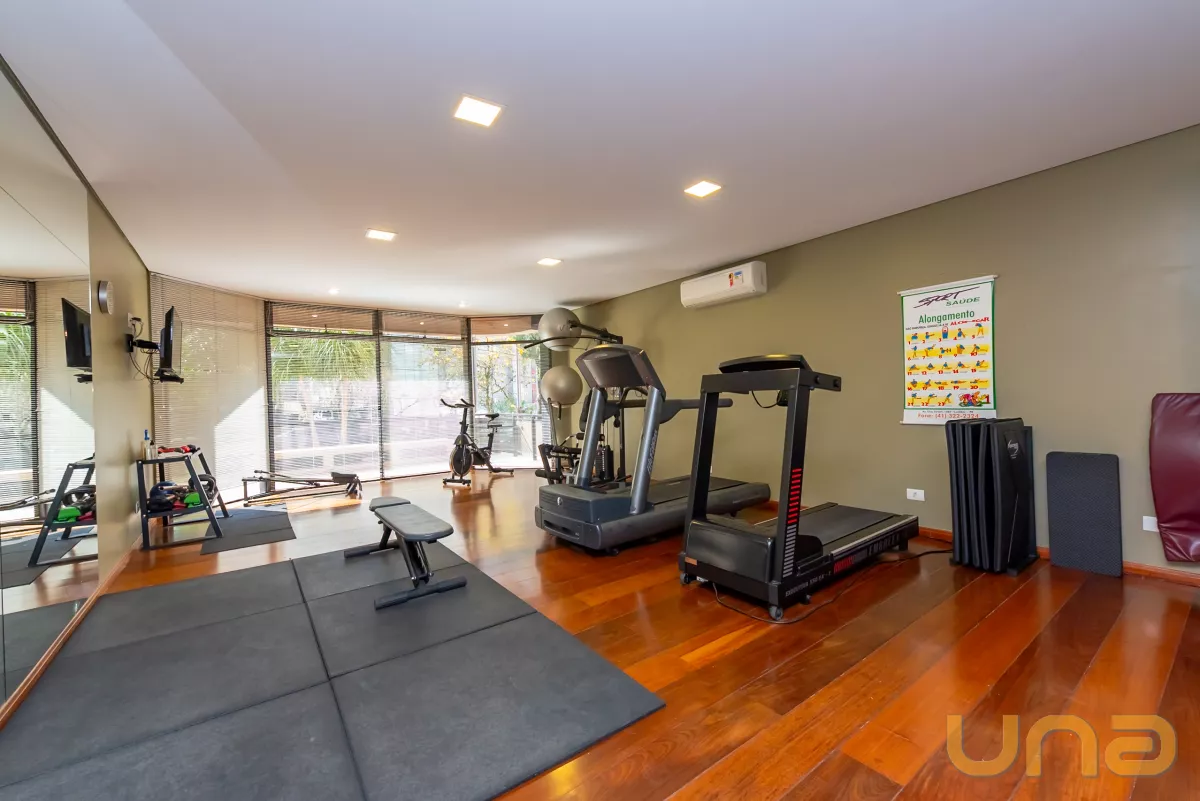 Condomínio com salão de festas sendo atualizado, playground e academia.