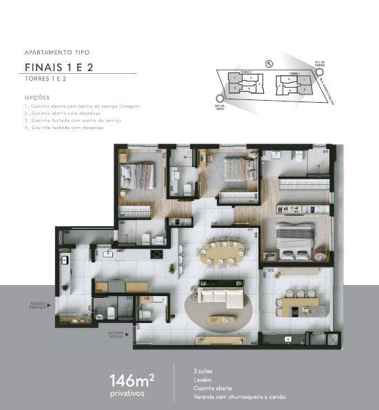 Imediações: Museu do Olho Detalhes: Paseo Folloni Apartamentos de 146 m² de área privativa dos apartamentos Und. 402 - Torre 02 3 suítes Garagem Dupla Gaveta Garagem simples + Deposito Lavabo Cozinha aberta Varanda com churrasqueira a carvão Estágio: Em construção Estoque: 26 Lançamento: 22/06/2024 Unidades por andar: 5 Entrega: 28/09/2027 Total de unidades: 74 Número de andares: 8 ** Imagens meramente ilustrativas **