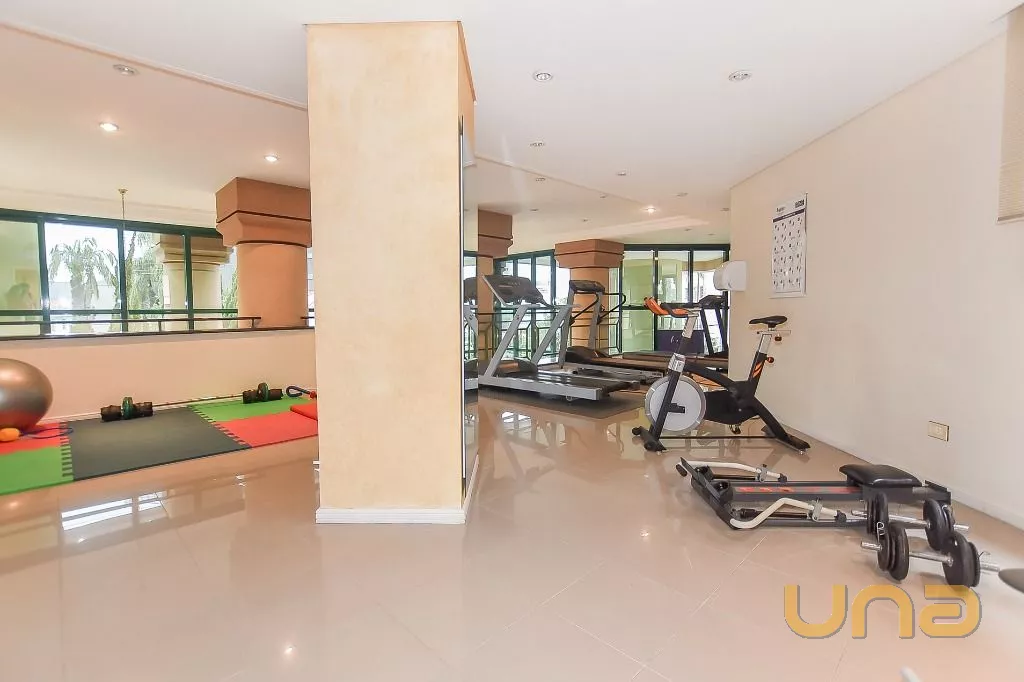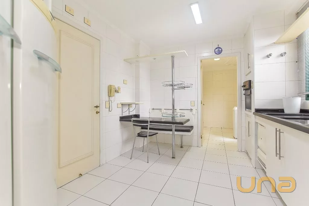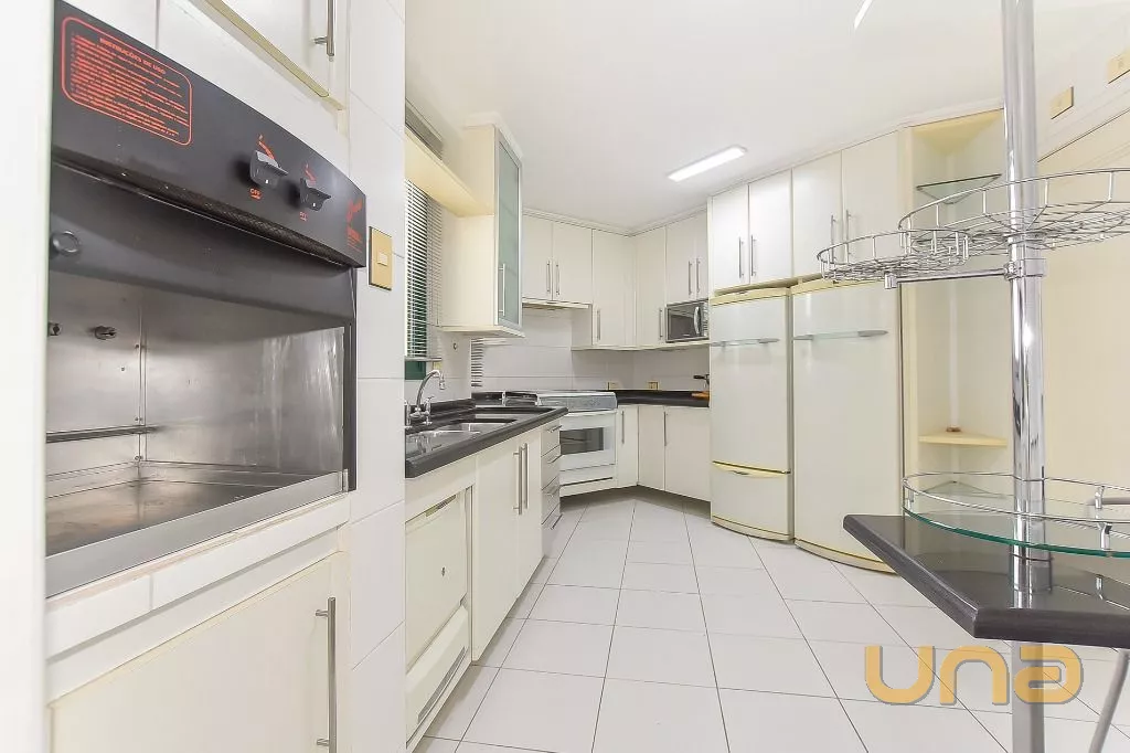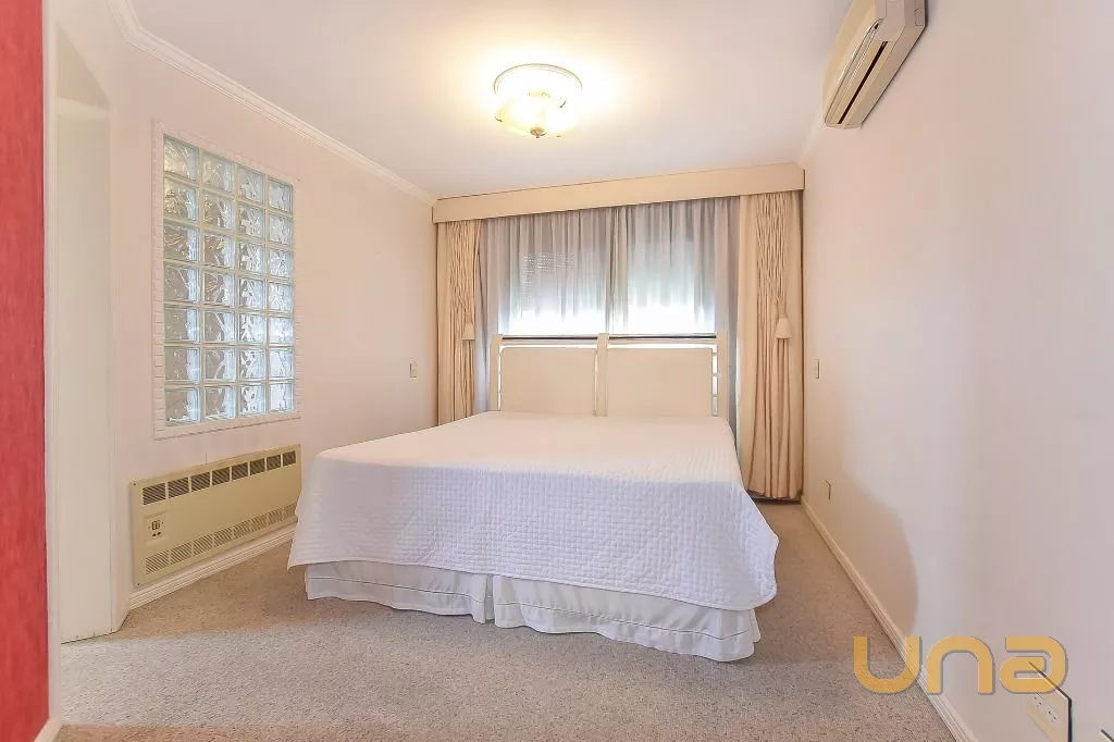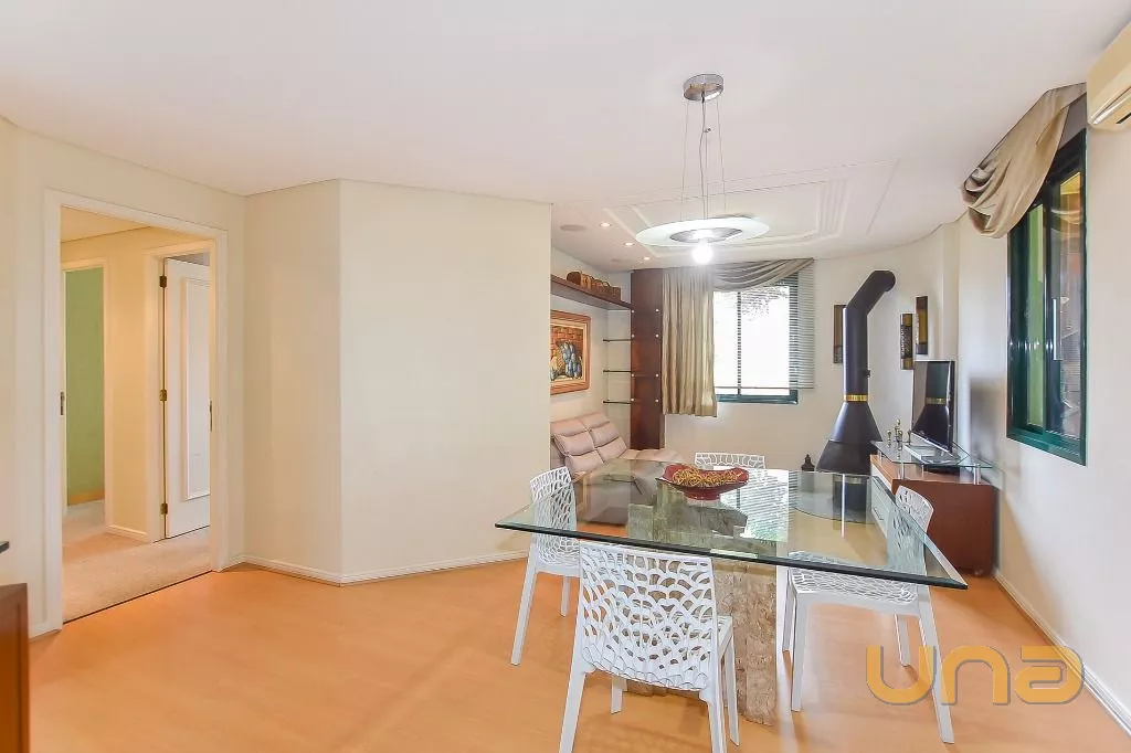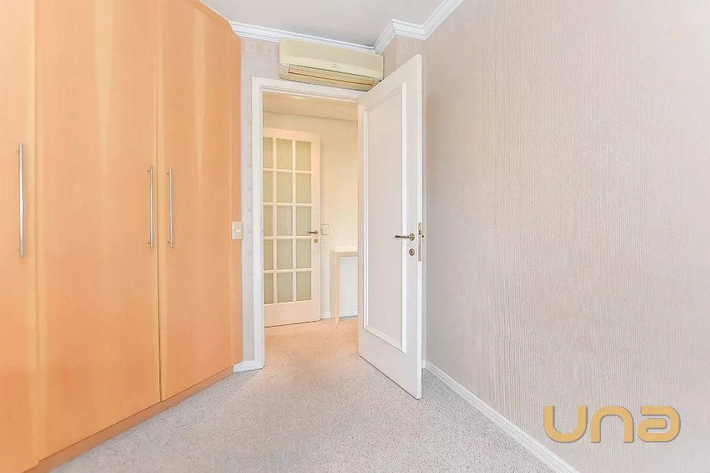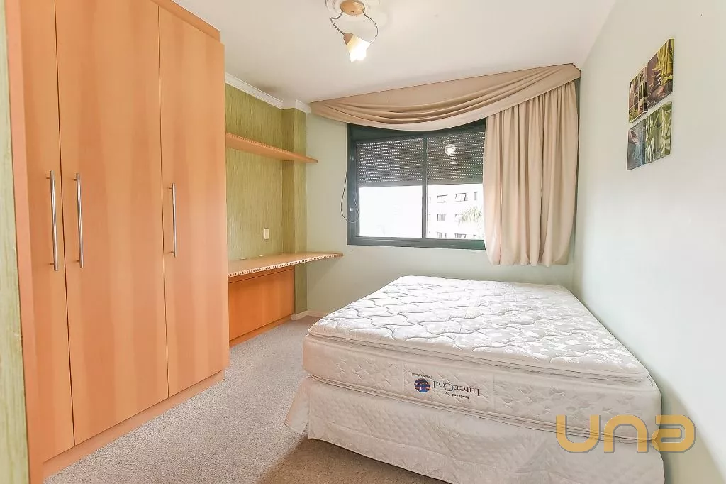 Apartamento semi-mobiliado, face norte e face oeste, com vista parcial para o centro, área privativa de 150 metros, com 03 quartos com armários, sendo 1 suíte com closed e hidromassagem e calefação, sala de estar, BWC social c/ bancada em mármore travertino, sala de jantar, lavabo, sala de tv com lareira, sacada, quarto e banheiro de empregada, lavanderia, cozinha com armários, tampo da pia em granito e churrasqueira.