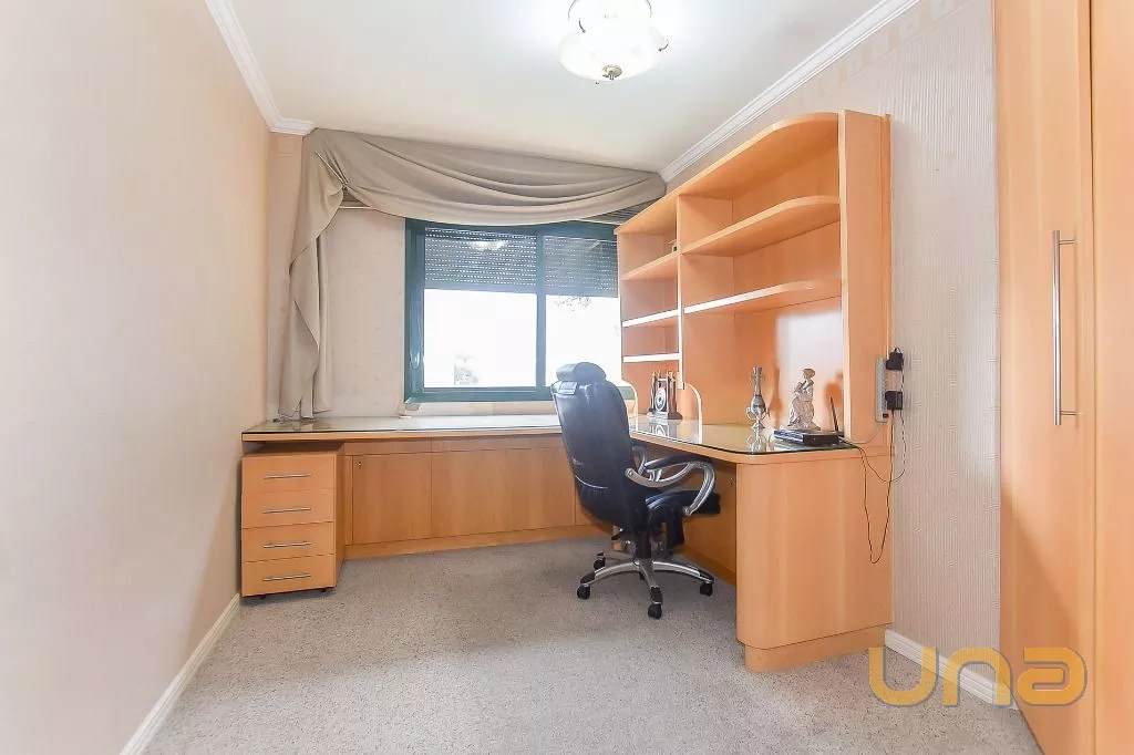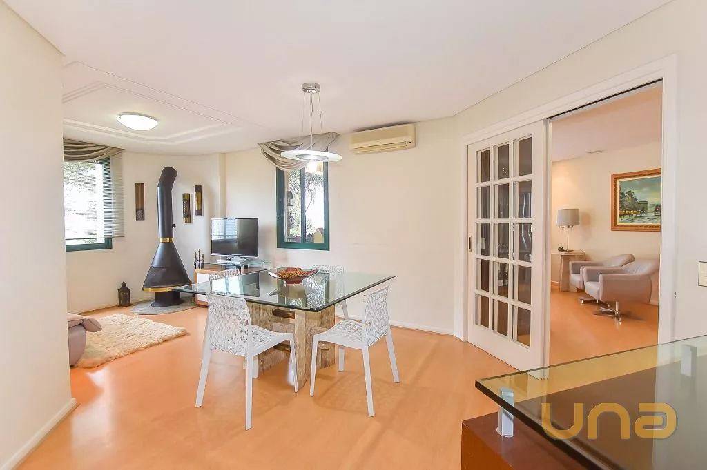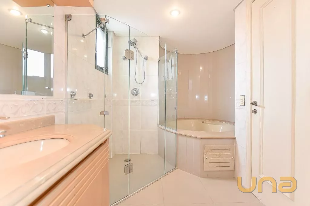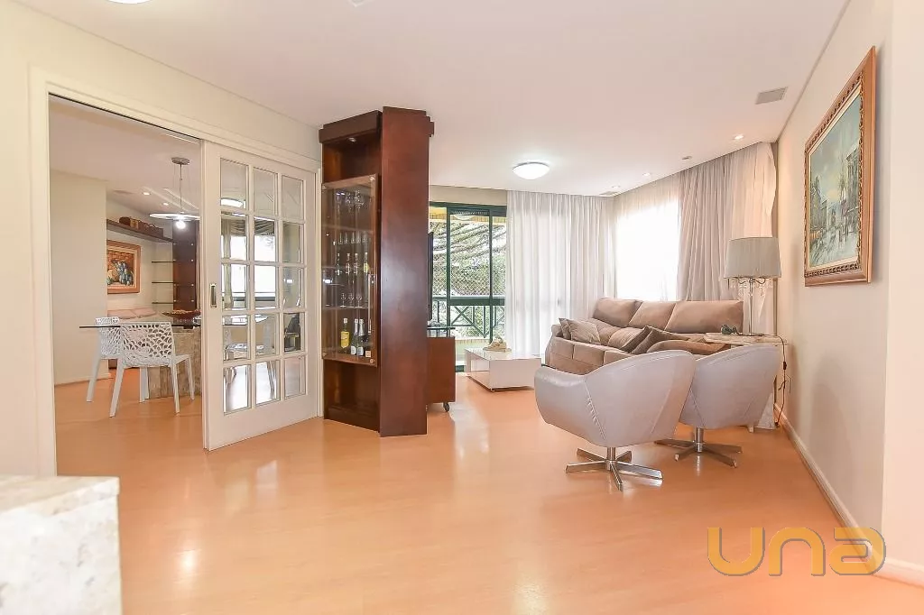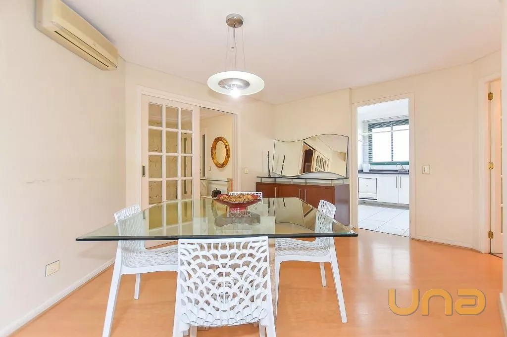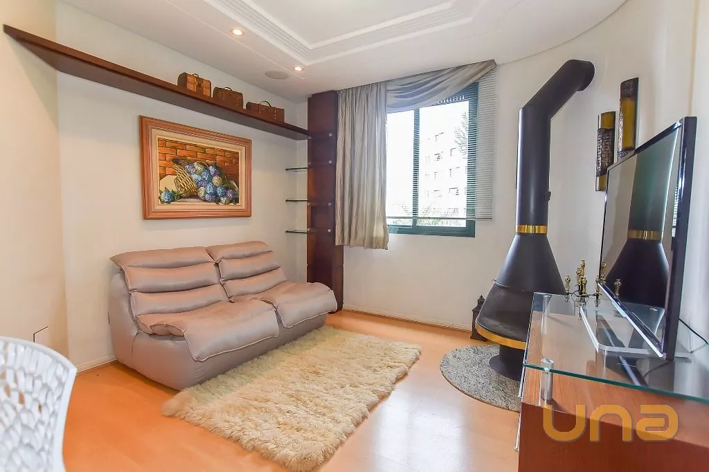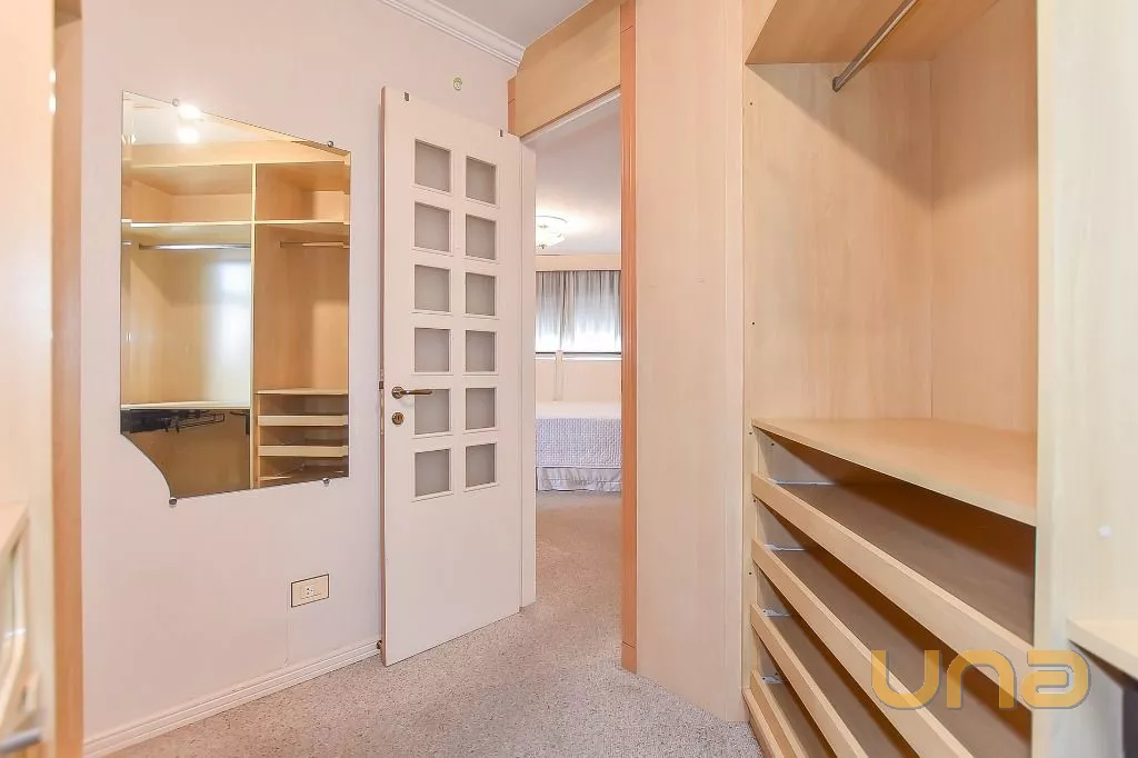 Apartamento semi-mobiliado, face norte e face oeste, com vista parcial para o centro, área privativa de 150 metros, com 03 quartos com armários, sendo 1 suíte com closed e hidromassagem e calefação, sala de estar, BWC social c/ bancada em mármore travertino, sala de jantar, lavabo, sala de tv com lareira, sacada, quarto e banheiro de empregada, lavanderia, cozinha com armários, tampo da pia em granito e churrasqueira.