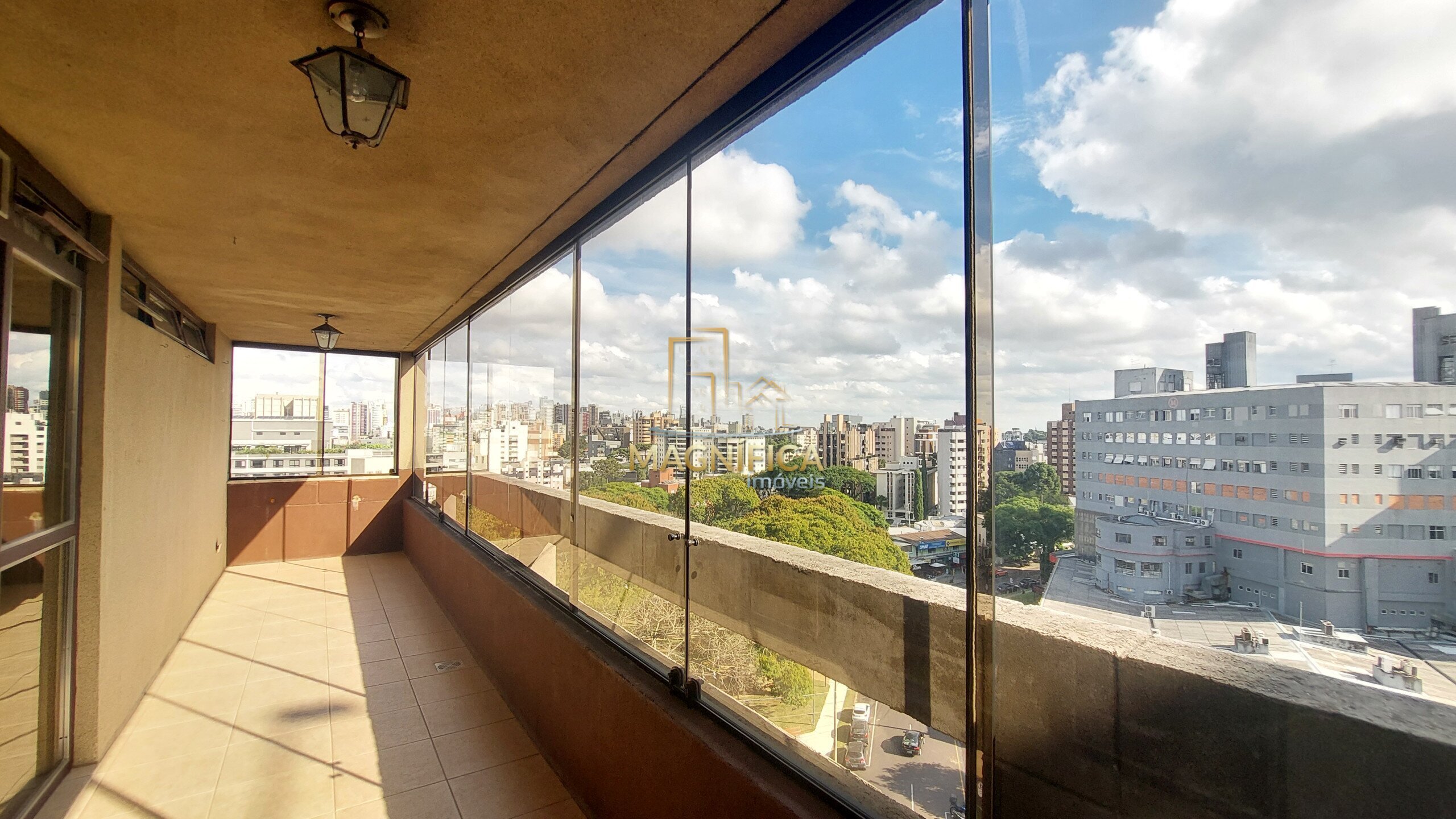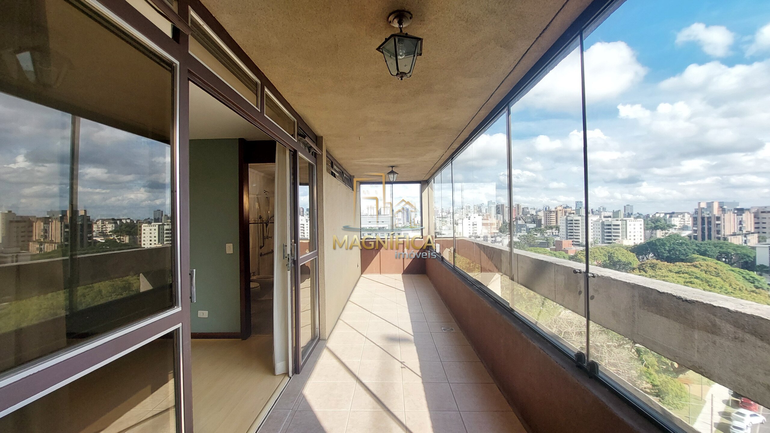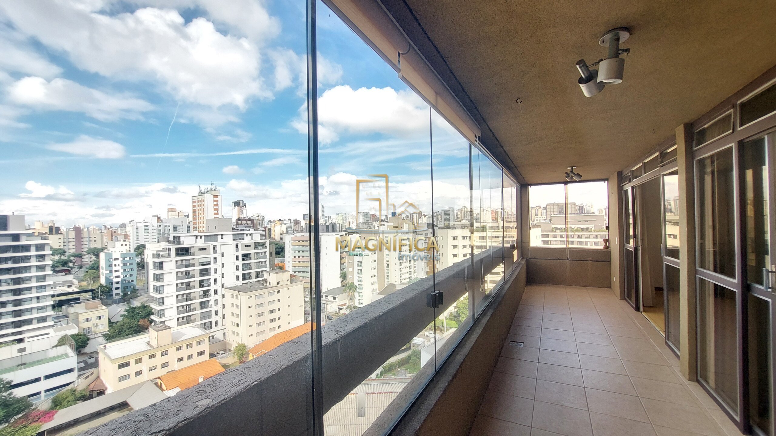 A posição privilegiada, proporciona excelente iluminação natural ao longo de todo o dia. A suíte principal contempla o pôr do sol, enquanto os demais quartos recebem a luz suave da manhã. As sacadas em ambos os lados oferecem uma vista panorâmica deslumbrante de Curitiba, em um dos pontos mais altos do Bigorrilho.