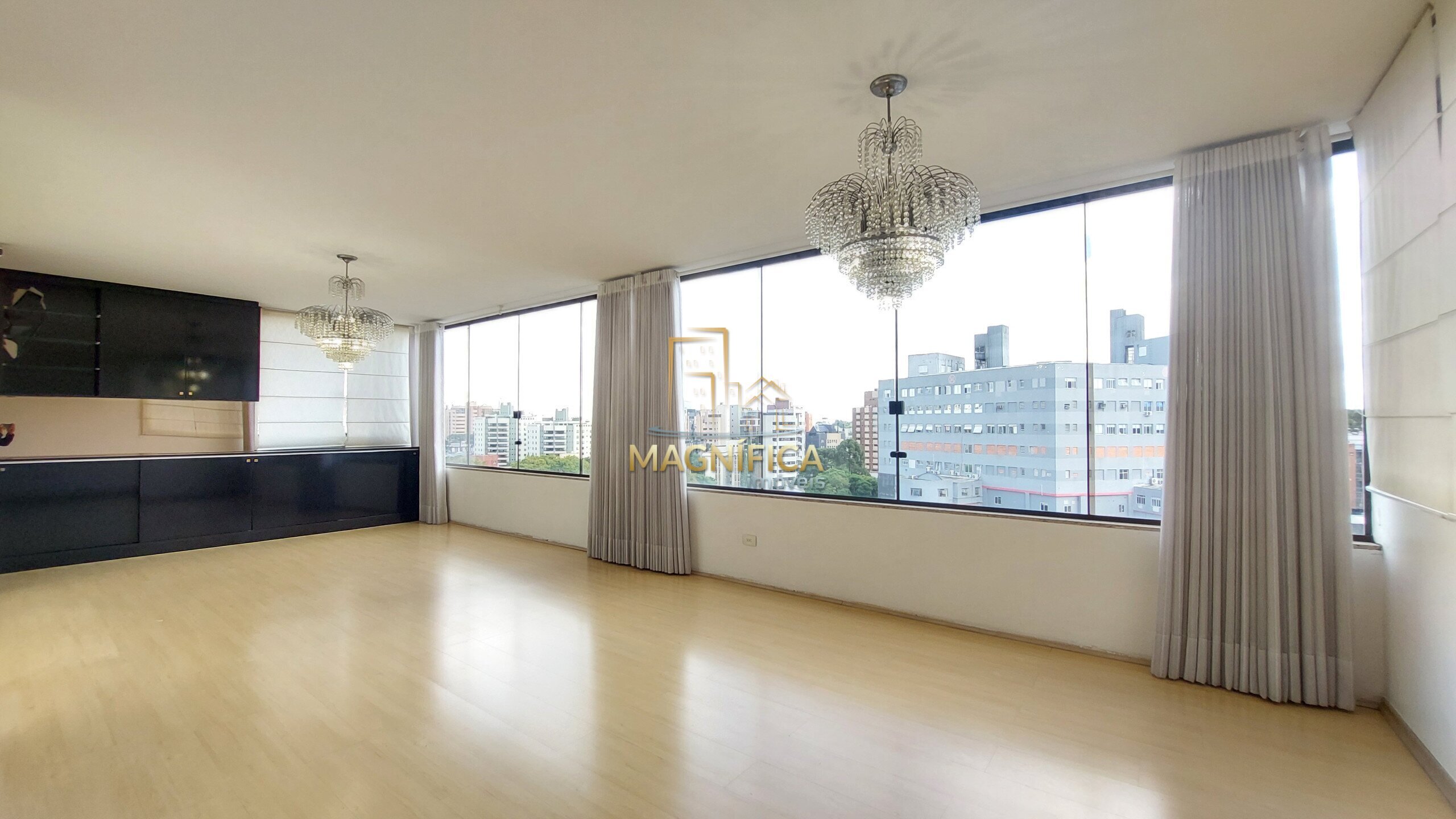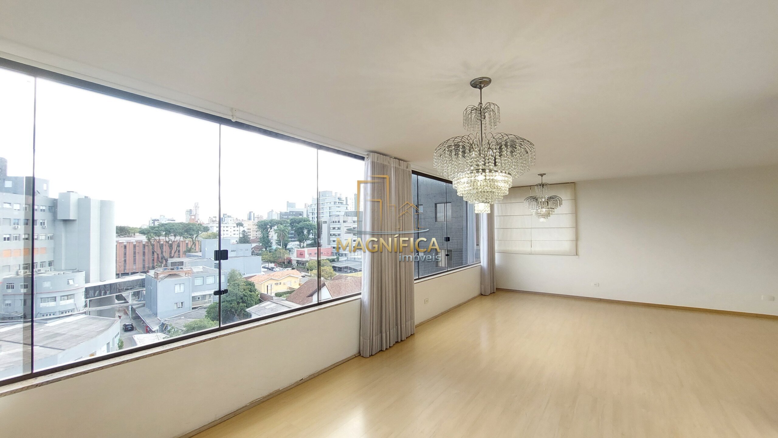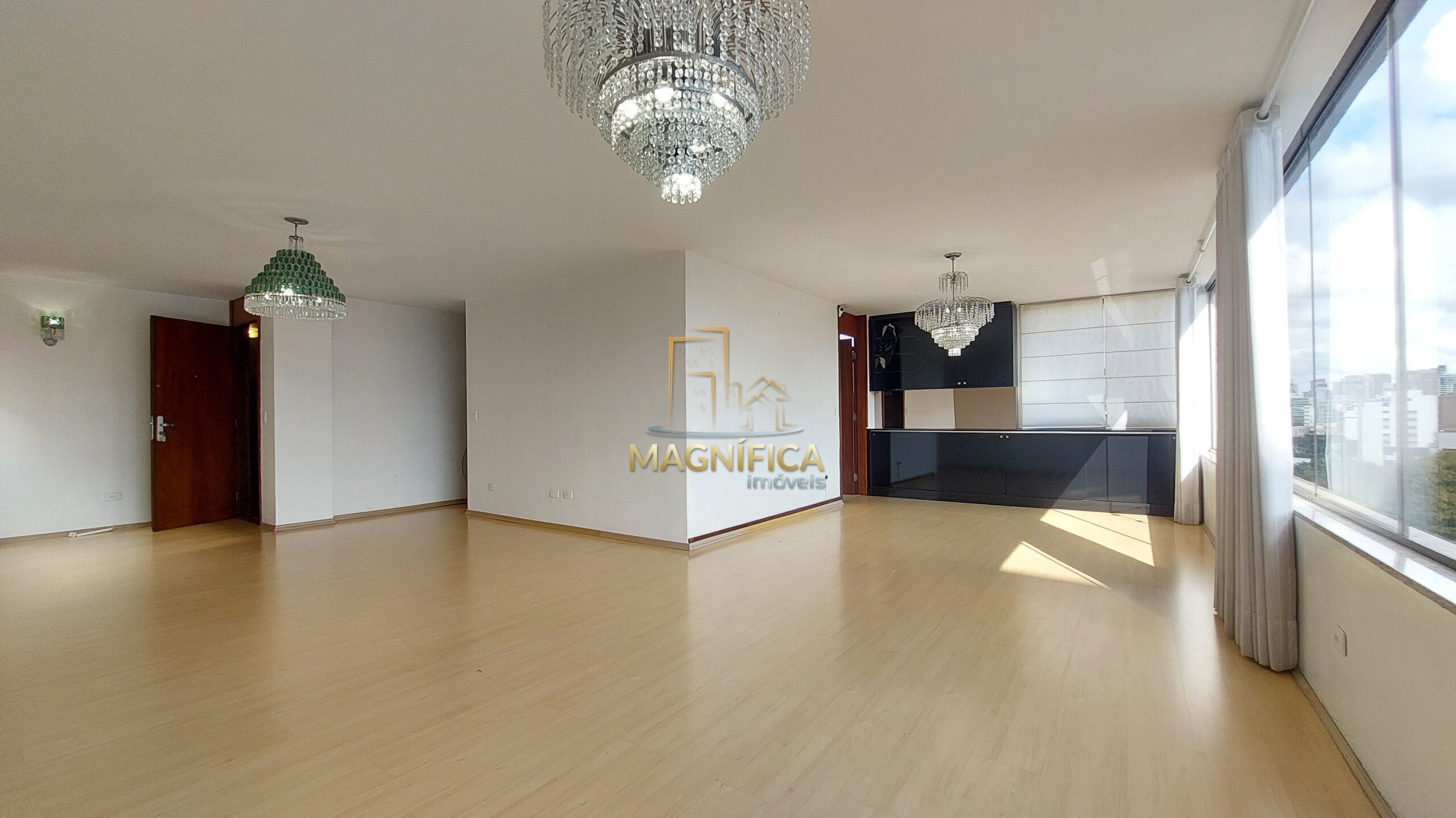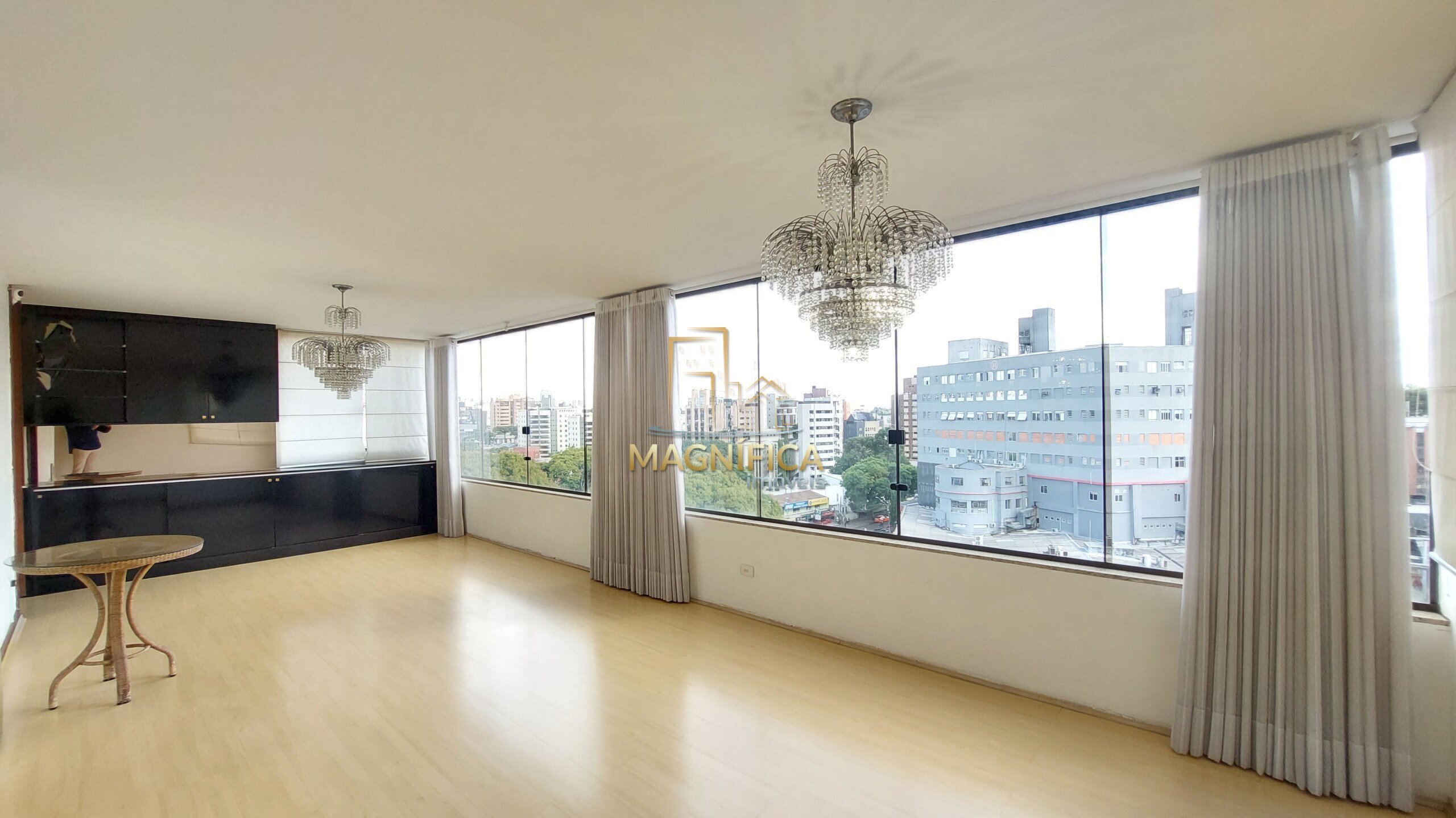 A posição privilegiada, proporciona excelente iluminação natural ao longo de todo o dia. A suíte principal contempla o pôr do sol, enquanto os demais quartos recebem a luz suave da manhã. As sacadas em ambos os lados oferecem uma vista panorâmica deslumbrante de Curitiba, em um dos pontos mais altos do Bigorrilho.