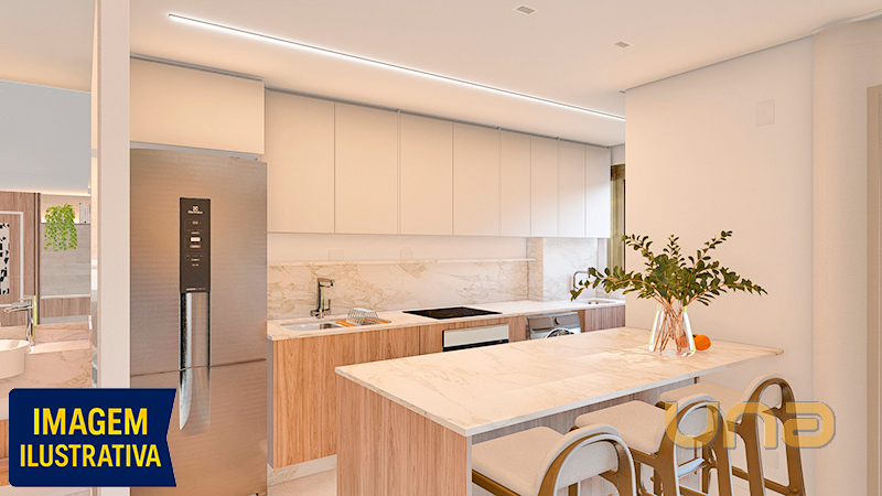 - Sala ampla para 2 ambientes, integrada à cozinha.