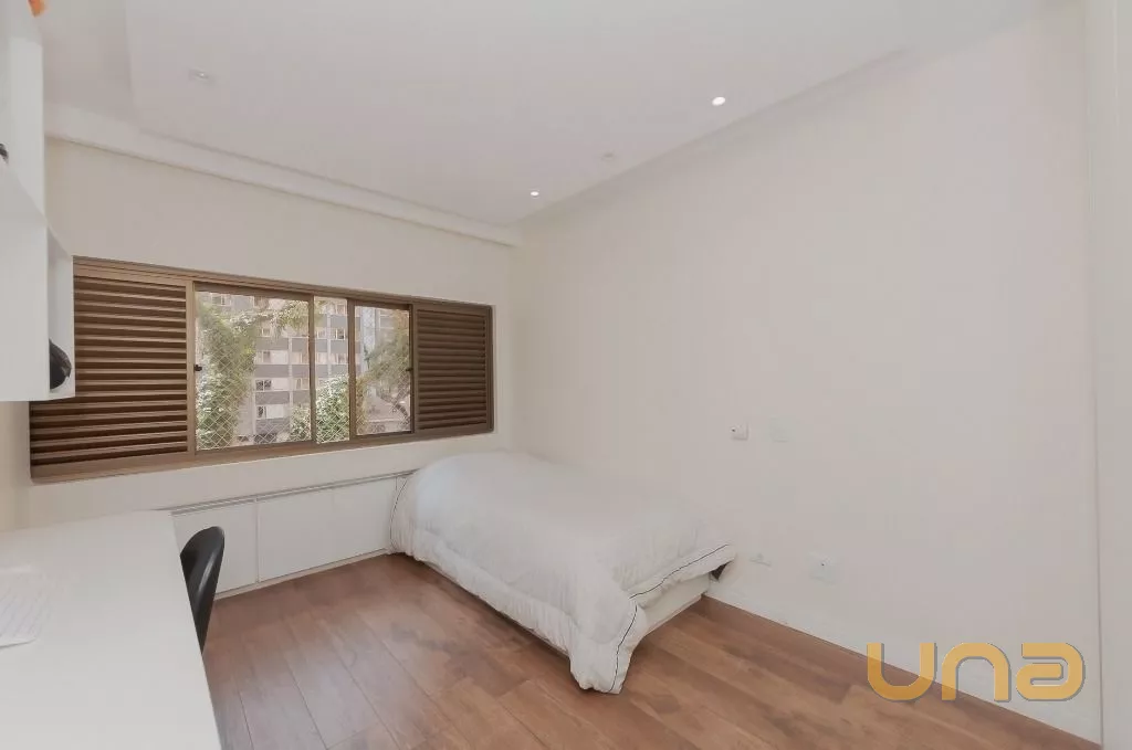 Apartamento alto padrão, um por andar, totalmente reformado, com acabamentos de alta qualidade. Excelente distribuição de espaços, começando com um belíssimo Hall de entrada, Lavabo, 4 quartos, sendo 1 suíte com closet, 1 Demi suíte. Dependência completa, 3 banheiros, estante da copa feita em dry wall, adicionando um toque sofisticado ao ambiente. A cozinha é um destaque especial, e o apartamento dispõe de aquecimento a gás central, aquecimento elétrico na pia da cozinha e aquecedor de passagem nos banheiros, garantindo conforto e praticidade. Além disso, o imóvel conta com aquecedores nos pisos dos quartos, banheiros e sala de estar, proporcionando um ambiente aconchegante em todos os cômodos. A segurança é priorizada, com acesso ao elevador por tag ou senha e portaria 24 horas. Os revestimentos de porcelanato estão presentes nos banheiros, quartos, sala de TV, cozinha e área de serviço. O teto é rebaixado em gesso com iluminação embutida, e as fechaduras são eletrônicas com acesso por senha. A suíte principal conta com uma banheira nova com hidromassagem. Este apartamento é ideal para quem busca um espaço confortável, seguro e com acabamentos de alta qualidade, situado em um dos bairros mais desejados de Curitiba. Entre em contato e agende sua visita. Não perca a oportunidade de conhecer este incrível imóvel! A cozinha é um destaque especial e o apartamento dispõe de aquecimento a gás central, aquecimento elétrico na pia da cozinha e aquecedor de passagem nos banheiros, garantindo conforto e praticidade. A segurança é priorizada, com acesso ao elevador por tag ou senha e portaria 24 horas. Os revestimentos de porcelanato estão presentes nos banheiros, quartos, sala de TV, cozinha e área de serviço. O teto é rebaixado em gesso com iluminação embutida, e as fechaduras são eletrônicas com acesso por senha. A suíte principal conta com uma banheira nova com hidromassagem. Este apartamento é ideal para quem busca um espaço confortável, seguro e com acabamentos de alta qualidade, situado em um dos bairros mais desejados de Curitiba. Entre em contato e agende sua visita. Não perca a oportunidade de conhecer este incrível imóvel!
