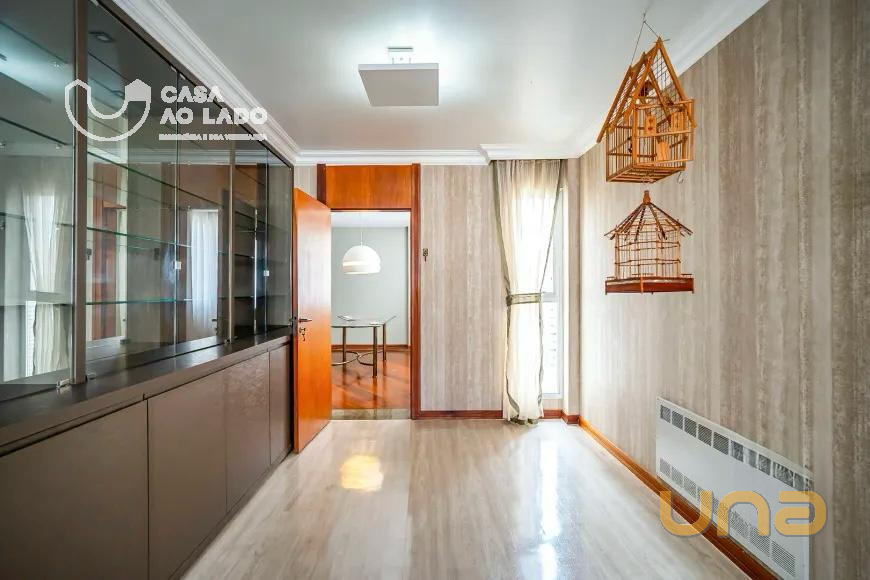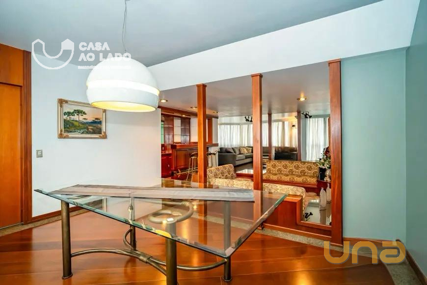 Um apartamento exclusivo e mobiliado, situado no coração de Curitiba, na prestigiada Avenida 7 de Setembro.. Destaques do imóvel: 4 suítes espaçosas, sendo a máster com closet amplo, janela termo acústica e hidromassagem. 5 banheiros com acabamento em granito de alto padrão. Sala de estar com dois ambientes, sala rebaixada com lareira e bar em mogno. Sala de jantar integrada, totalizando 80 m² com piso de madeira maciça emoldurado em granito. Cozinha equipada com eletrodomésticos Brastemp e Fischer, incluindo forno combinado, geladeira com gavetão, lava-louças e cafeteira com moedor. Área de serviço completa com aquecedor, lavadora e secadora Brastemp e freezer. Dependência de empregada com banheiro privativo.