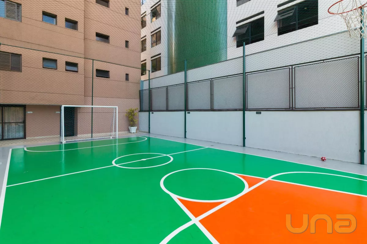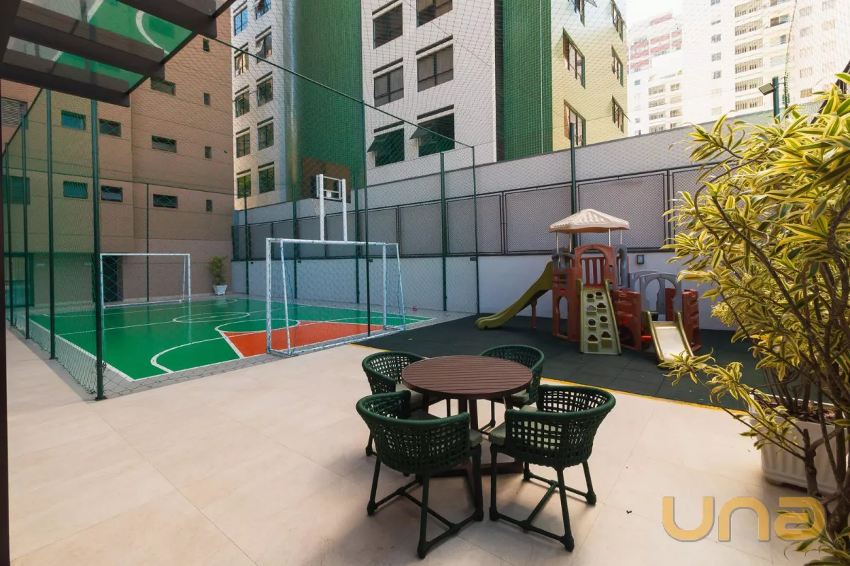 O prédio é pastilhado, face norte, portaria 24 horas, 2 salões de festas (1 com churrasqueira), ambos com acesso a quadra poliesportiva na parte dos fundos e na frente um amplo terraço com o playground, fitness, elevador com senha.