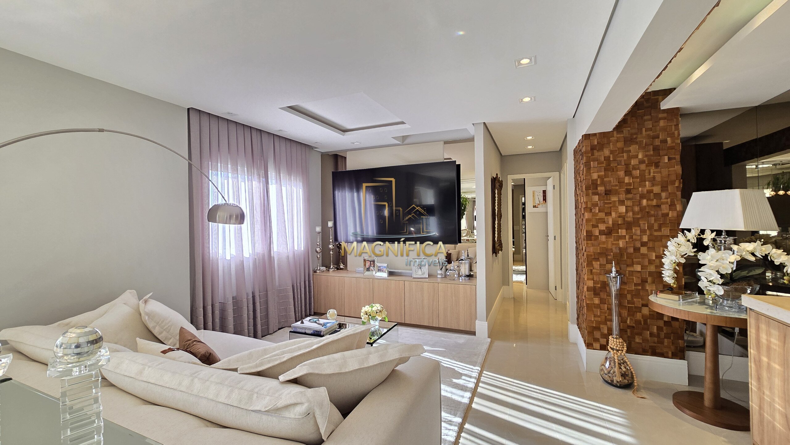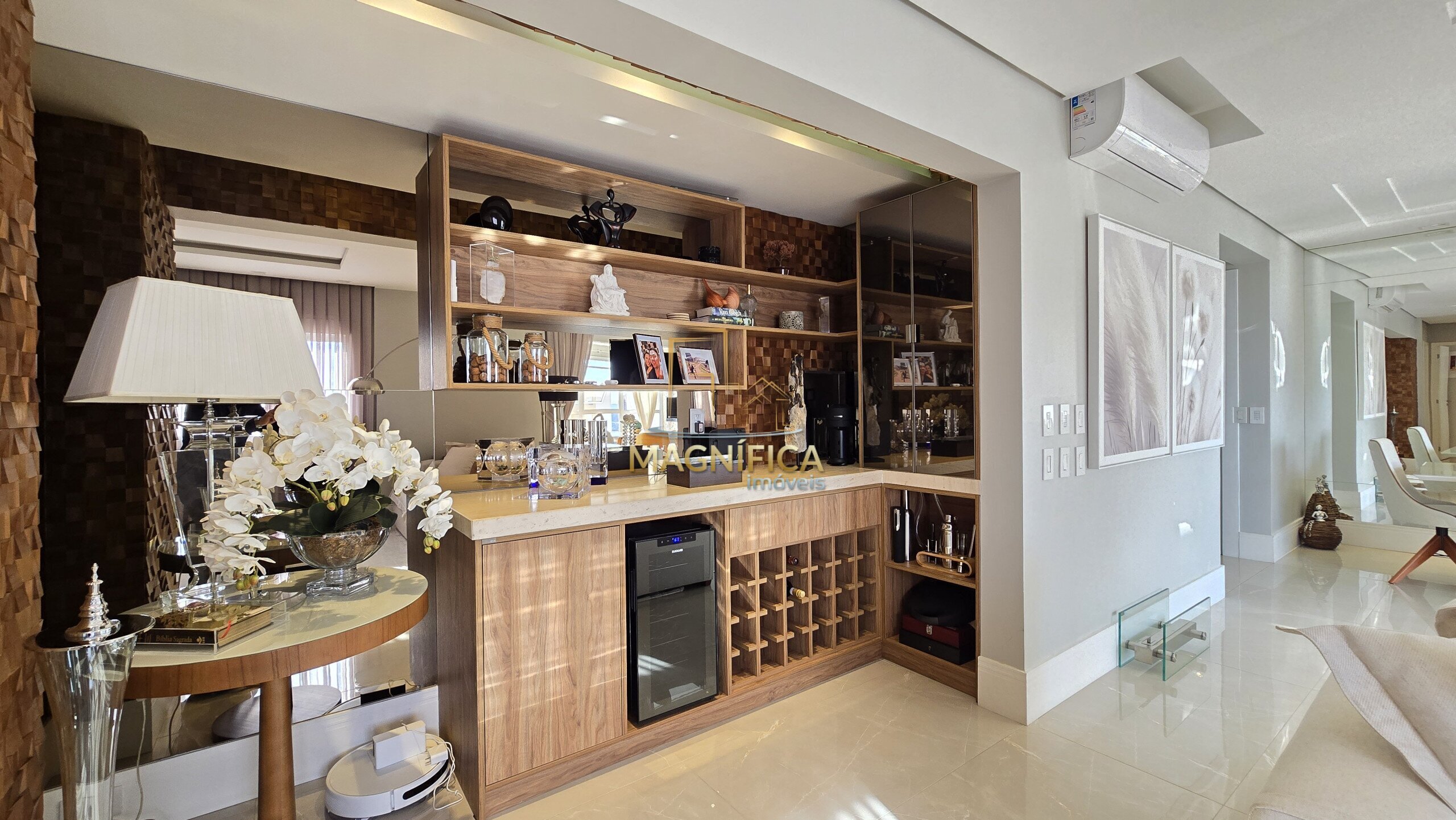 São 113 m² muito bem distribuídos, em andar alto, com uma decoração impecável e materiais sofisticados. O imóvel conta com piso em porcelanato e vinílico, além de ar-condicionado em todos os ambientes, garantindo conforto em cada detalhe.