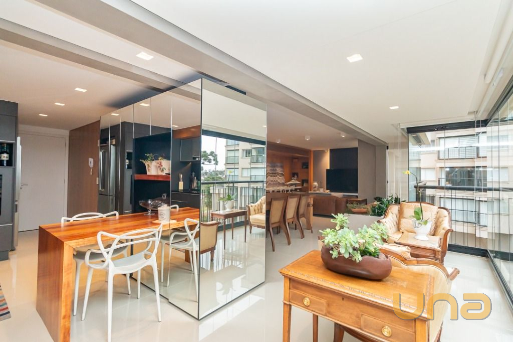 Detalhes do Imóvel: 3 suítes com armários planejados ( linda marcenaria), lavabo, sala ampla e ensolarada para três ambientes, varanda integrada com churrasqueira, cozinha separada, área de serviço separada, excelentes armários planejados fixos, espelhos, ar-condicionado split e cortinas