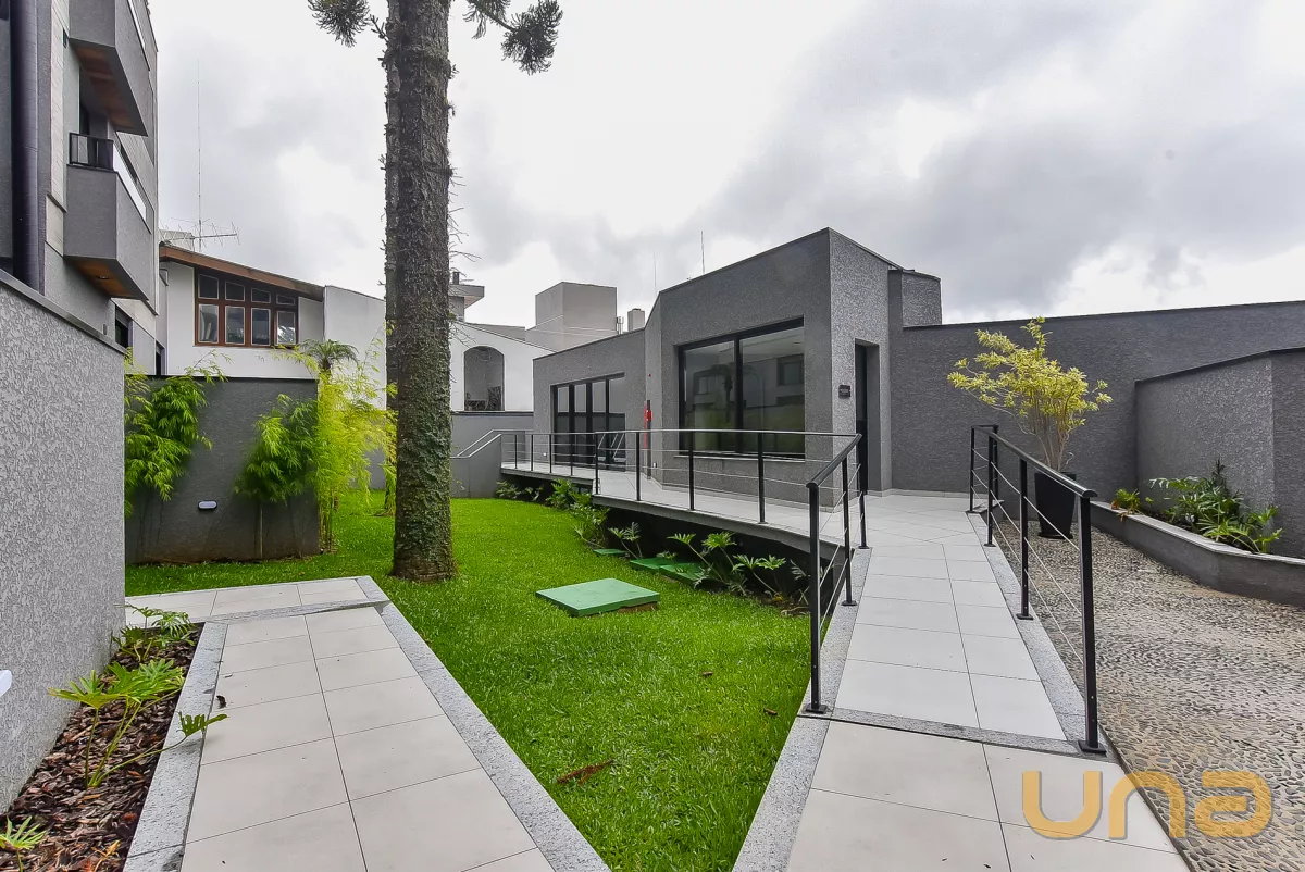 O prédio possui uma fachada marcante e um paisagismo encantador.