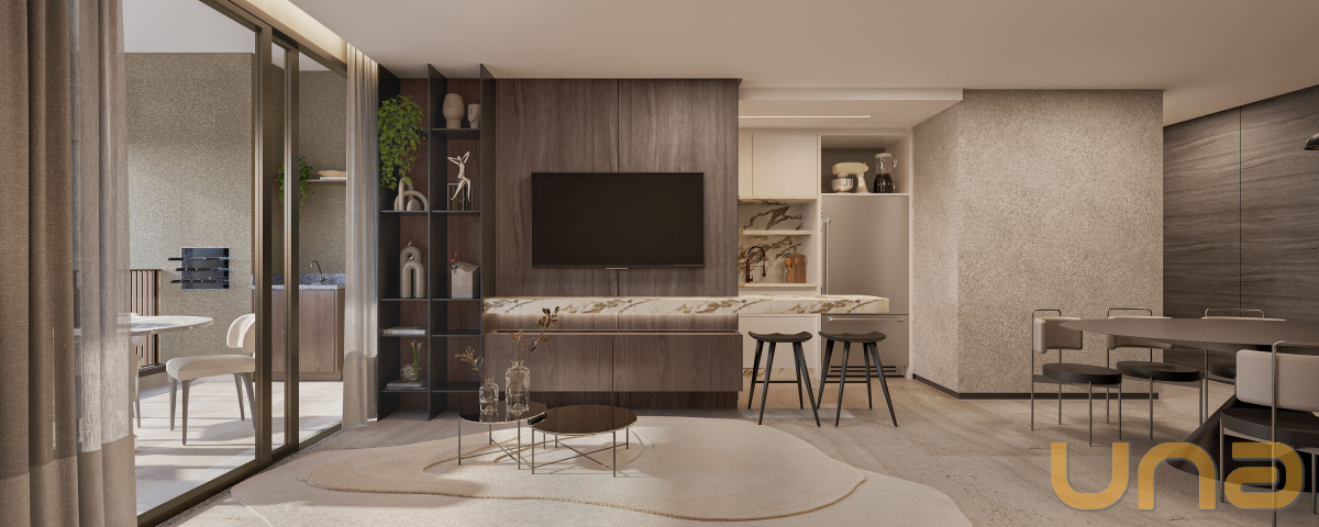 O apartamento conta com 3 quartos, sendo 1 suíte, varanda com churrasqueira a carvão, 1 vaga de garagem e um depósito. O projeto foi pensado para garantir conforto e privacidade, com isolamento acústico reforçado nas lajes e tubulações, além de portas com lâmina retrátil inferior para vedação acústica nos quartos e na entrada.