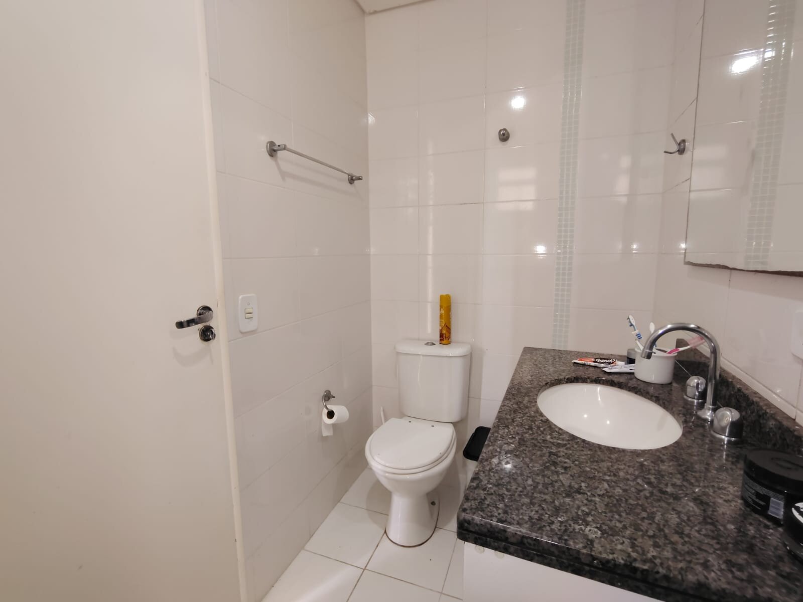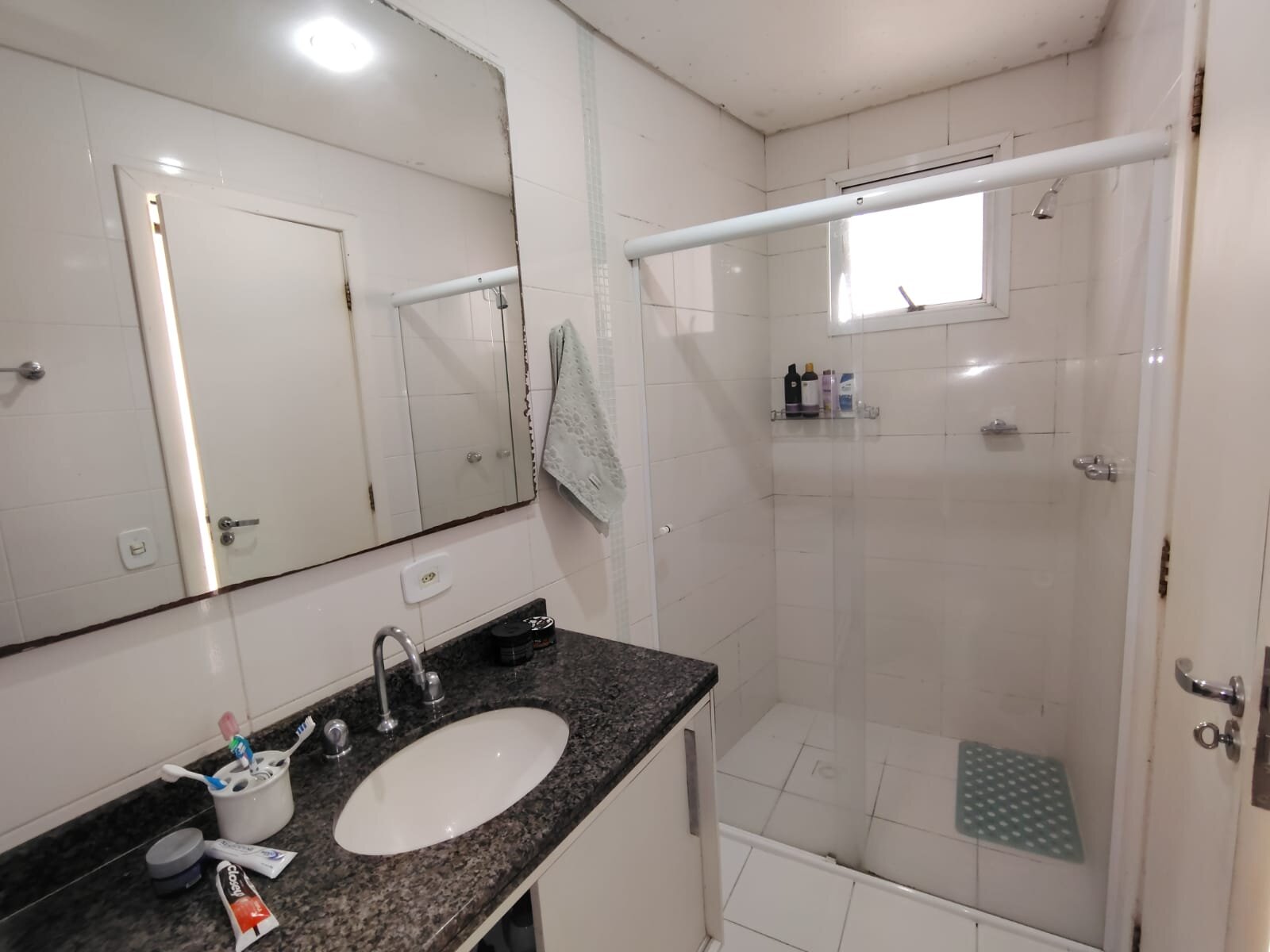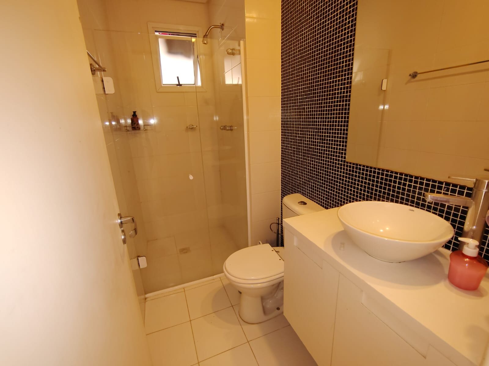 • Banheiro social com box em vidro temperado e espelho, acabamento de bom gosto;