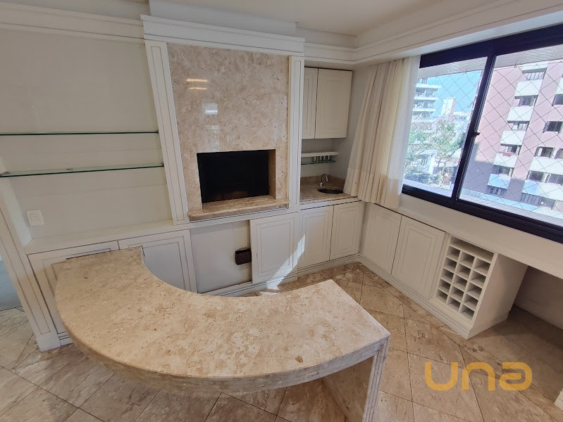 - Churrasqueira privativa com bancada em marmore, piso em marmore travertino