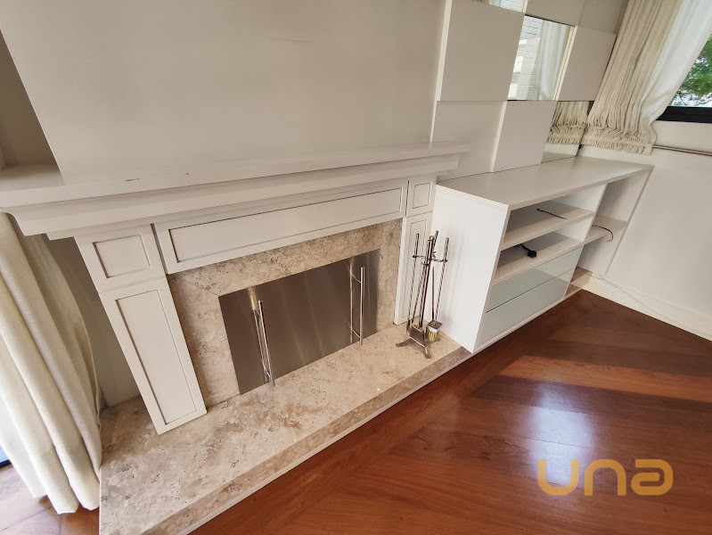 - Sala de estar intima com lareira, jantar em 2 ambientes, com churrasqueira. divisória de ambiente separando as salas, Gesso rebaixado, iluminação em Led.