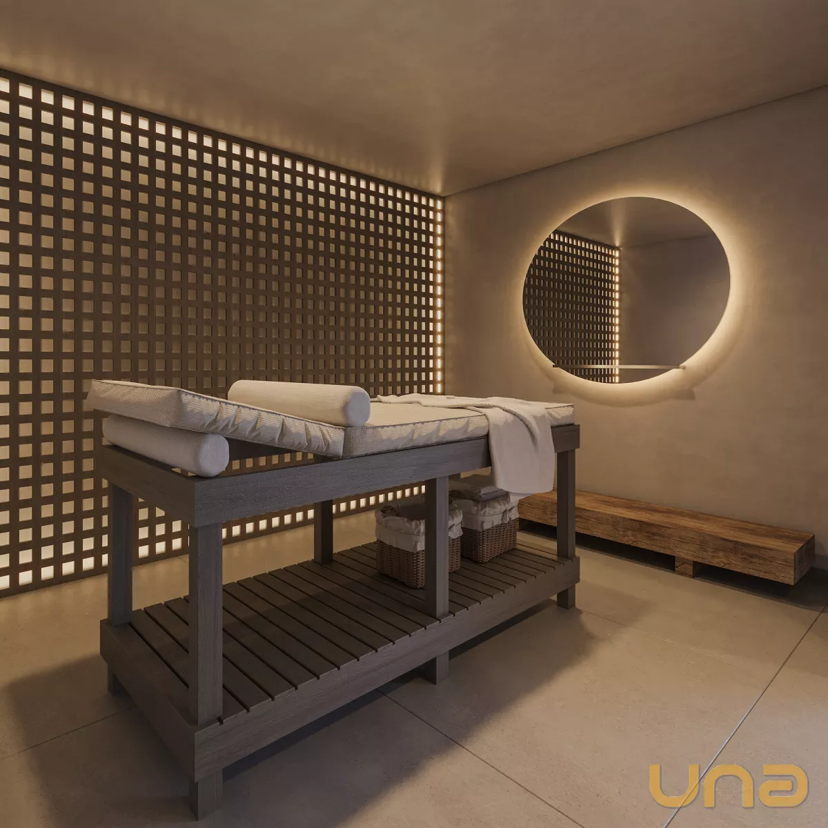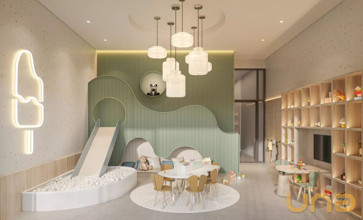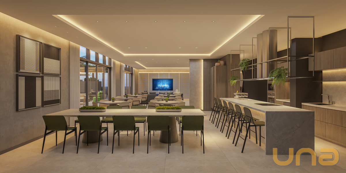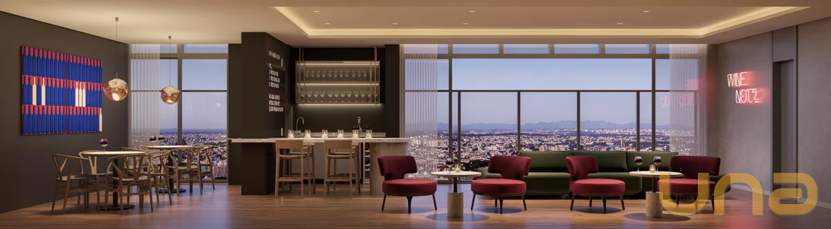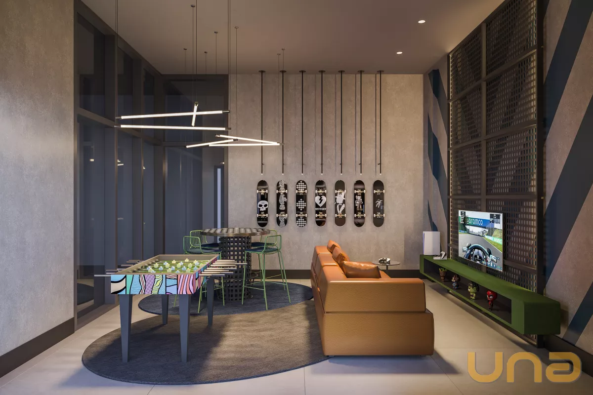 Condomínio com área de lazer completa: academia, piscinas interna e externa, sauna, quadra poliesportiva, sala de jogos, sala de massagem, espaço beauty, espaço gourmet, salão de festas, sport bar, wine bar, coworking, mirante lounge, fireplace, brinquedoteca, playground, pet place e bicicletário.