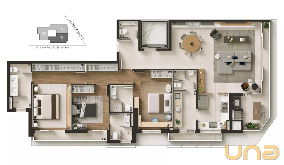 Apartamento com 3 suítes, 159m² privativos, sacada com churrasqueira, sala ampla para 2 ambientes e 2 vagas de garagem, próxima aos melhores pontos comerciais, culturais e gastronômicos de Curitiba.
