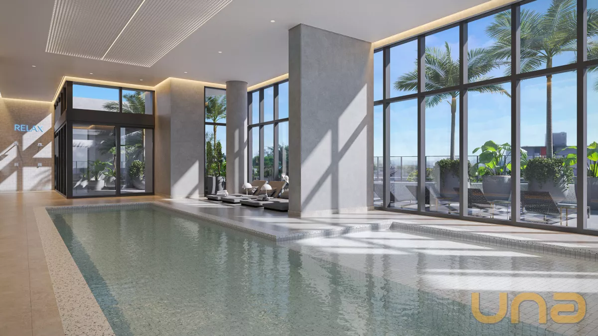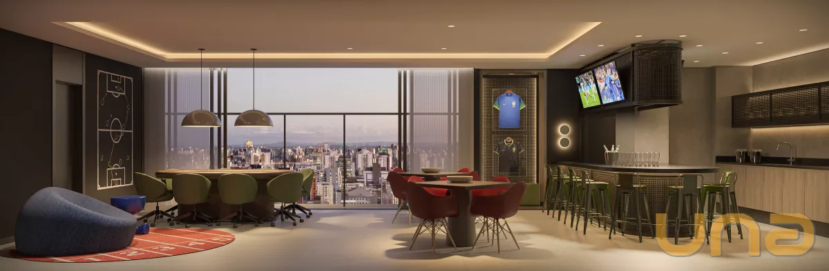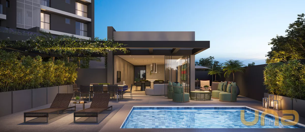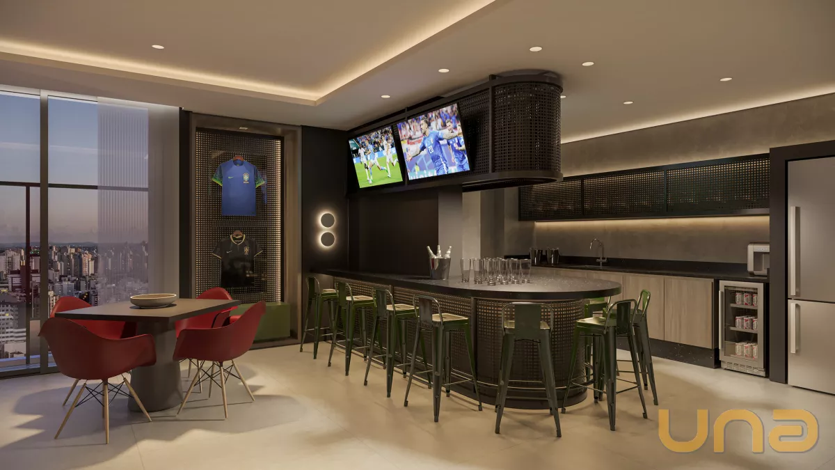 Condomínio com área de lazer completa: academia, piscinas interna e externa, sauna, quadra poliesportiva, sala de jogos, sala de massagem, espaço beauty, espaço gourmet, salão de festas, sport bar, wine bar, coworking, mirante lounge, fireplace, brinquedoteca, playground, pet place e bicicletário.