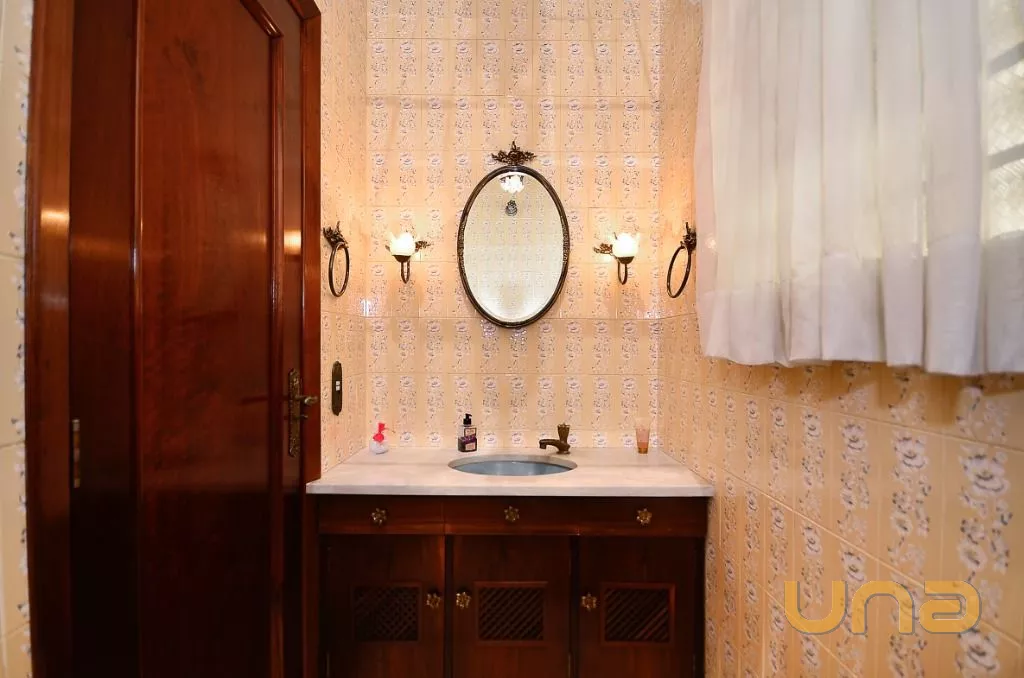 A residência é assim distribuída: - Casa principal tem o Hall, Lavabo, 06 Salas e 03 BWC; em anexo tem 02 Salas, Churrasqueira, BWC e Garagem 02 carros. Quintal e Jardim.