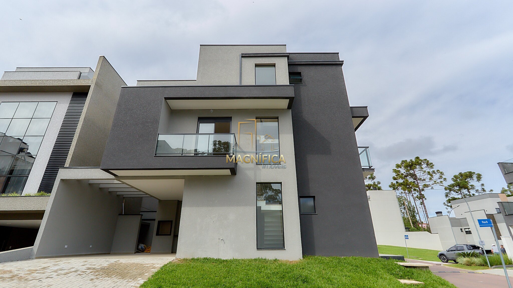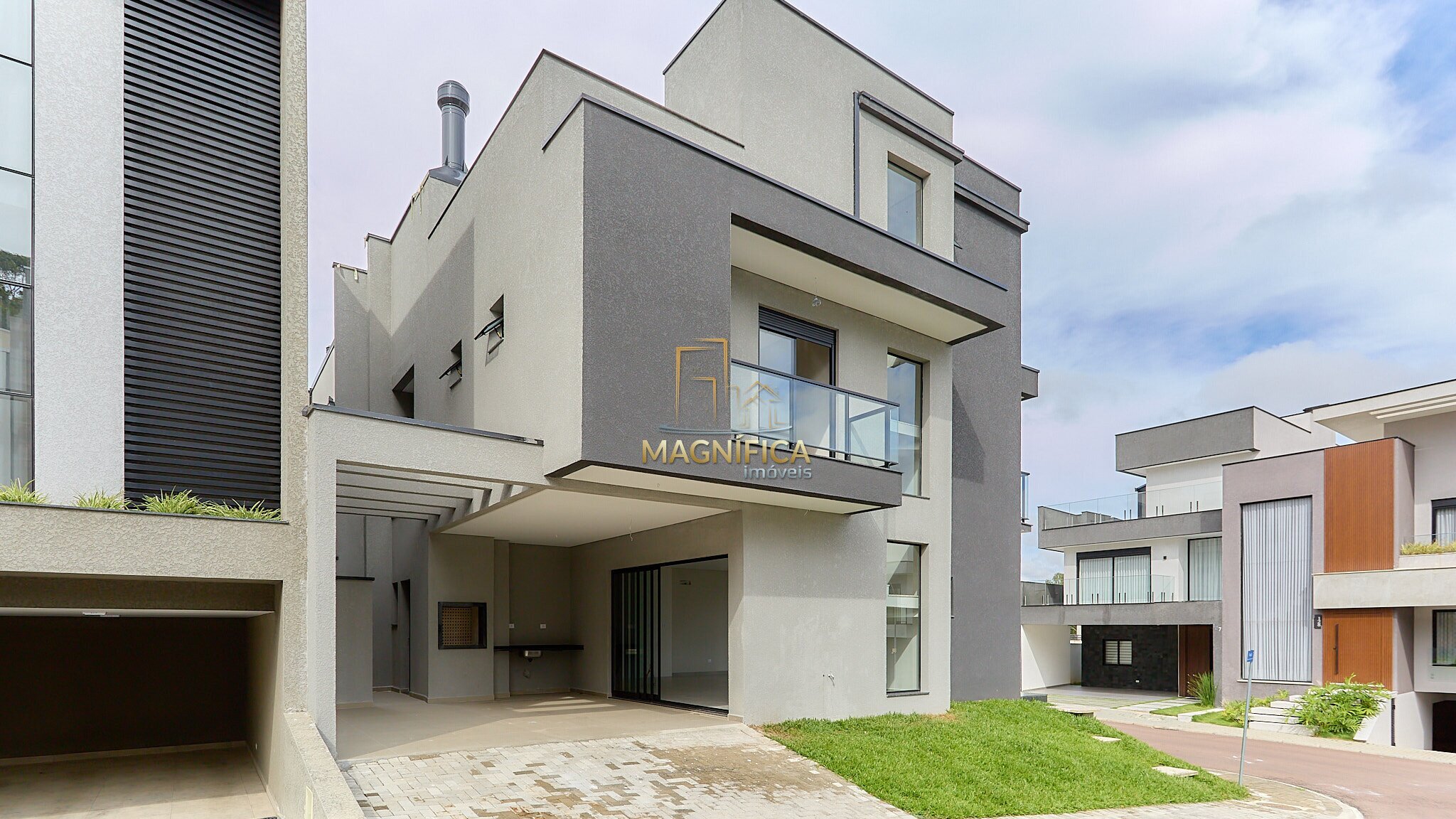 No Alto Boulevard, no Bairro Alto, essa casa chama atenção logo de cara — de esquina, moderna, recém construída e com um padrão que foge do comum.