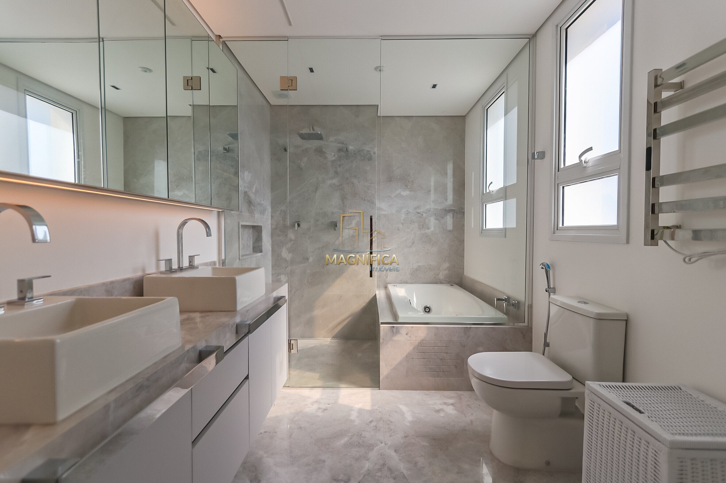Acabamentos premium em porcelanato, mármore e metais de alta qualidade