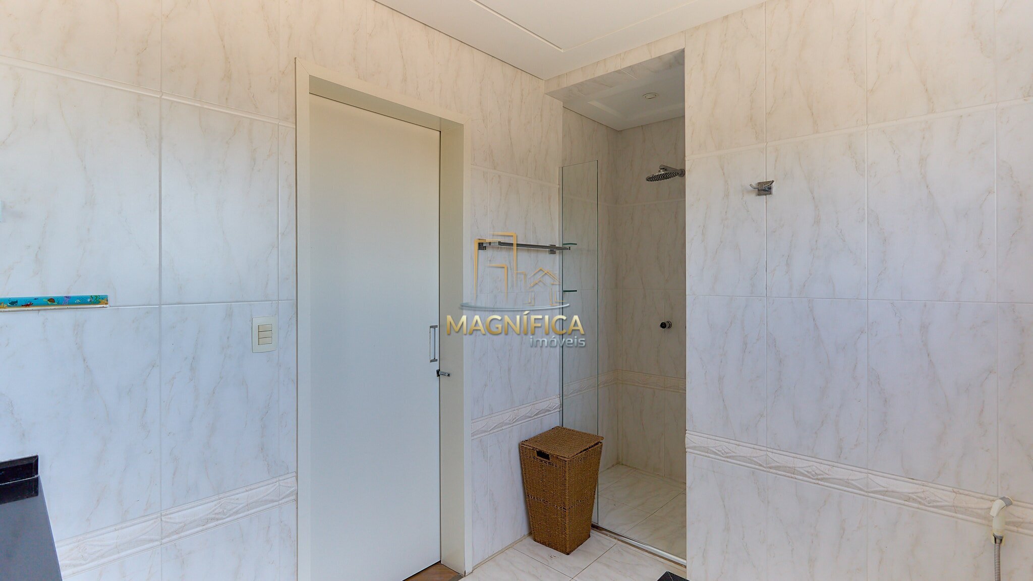 Suíte principal com closet e banheira de hidromassagem, mais uma suíte, um quarto e banheiro social.