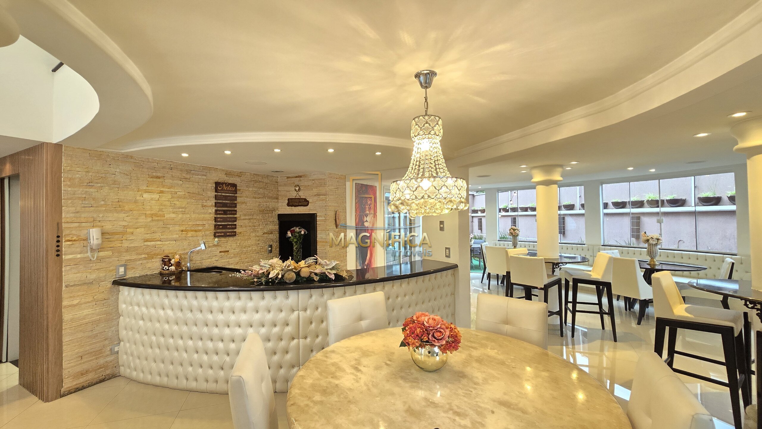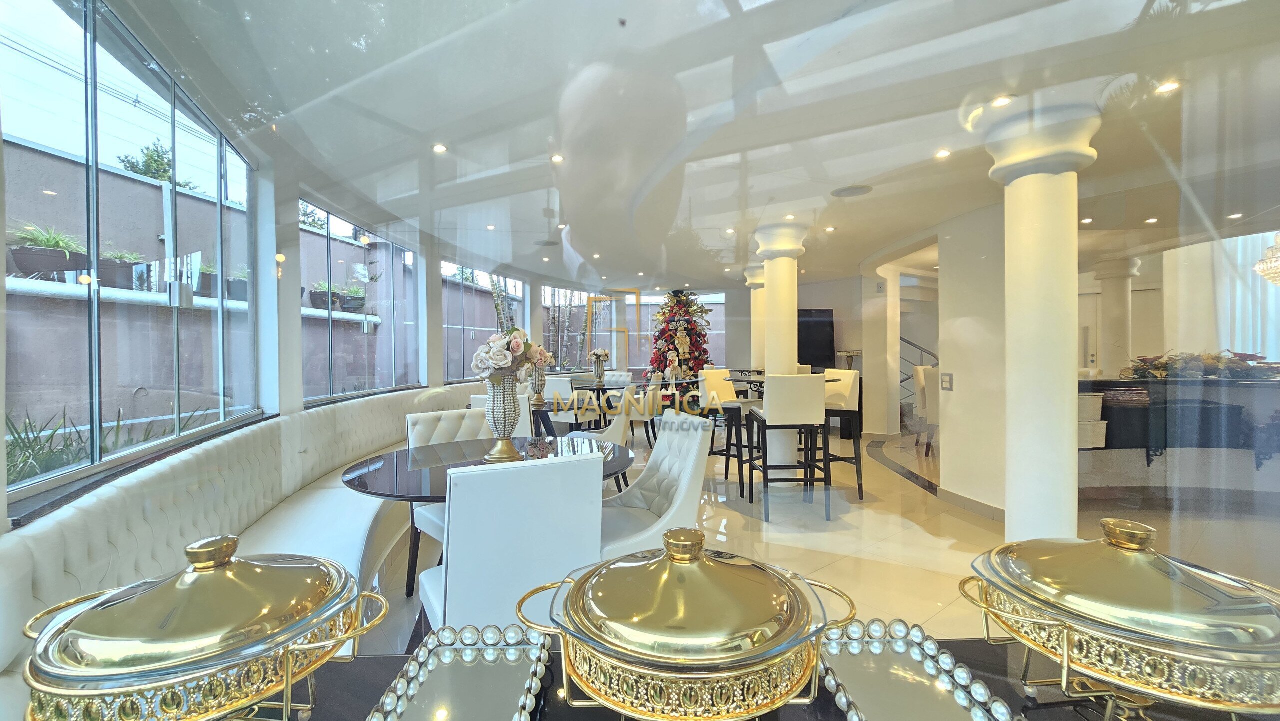 Salão gourmet privativo, totalmente integrado, com churrasqueira para dois ambientes – ideal para receber e desfrutar momentos únicos.