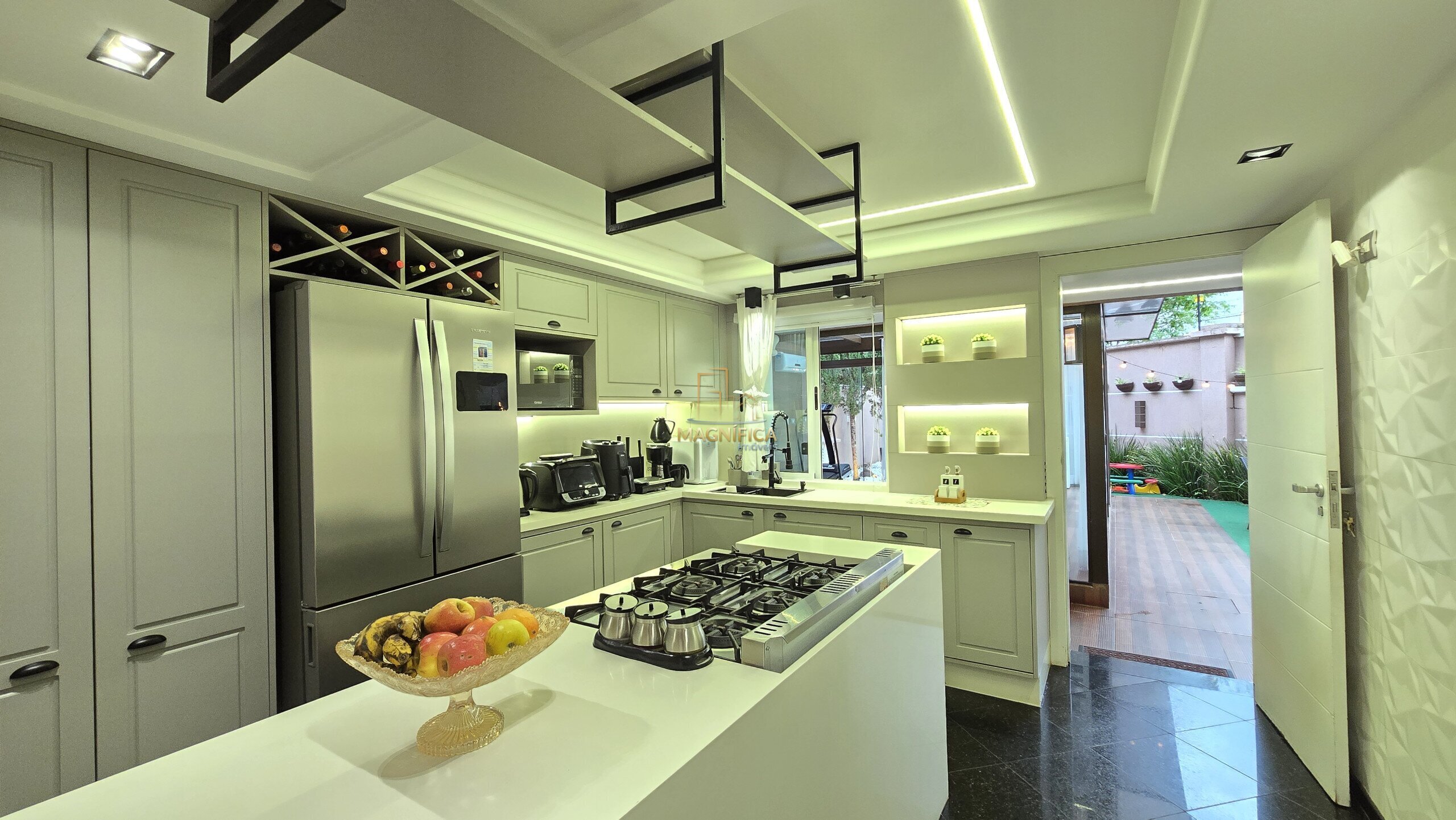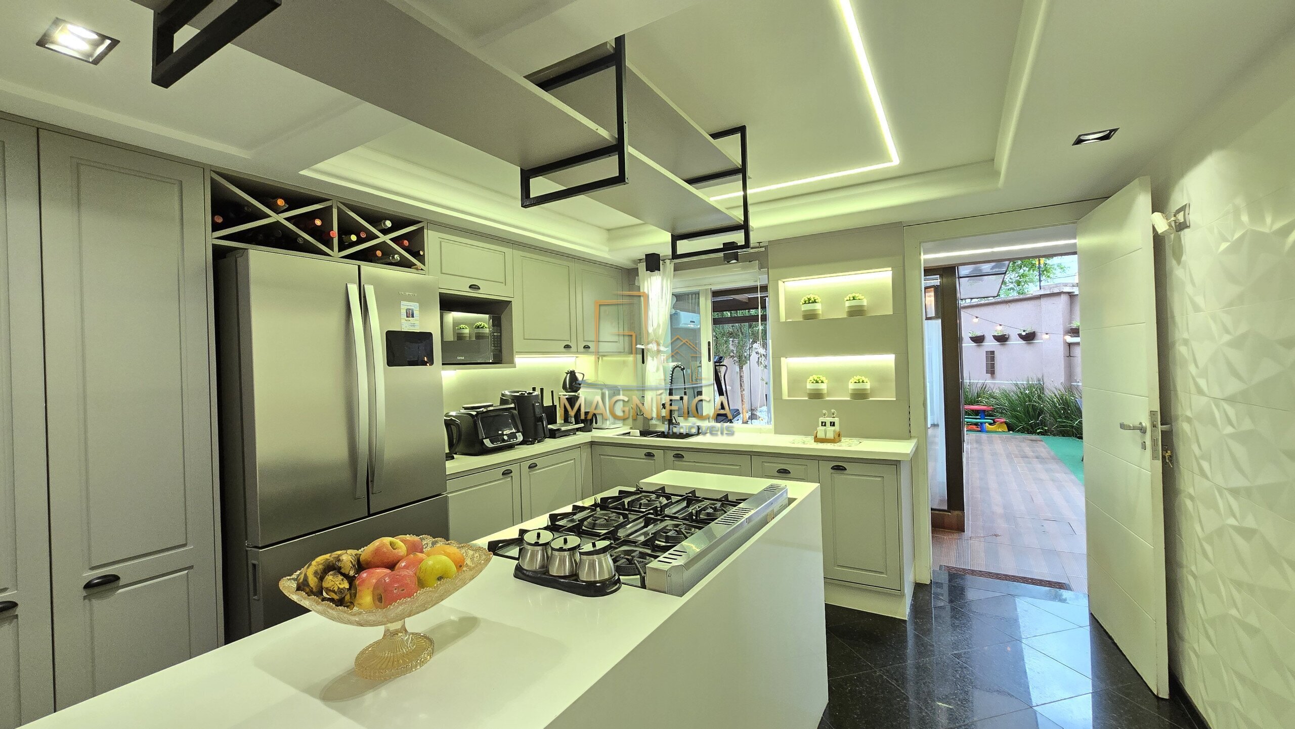 Cozinha planejada completa, equipada com fogão profissional e armários de altíssima qualidade.