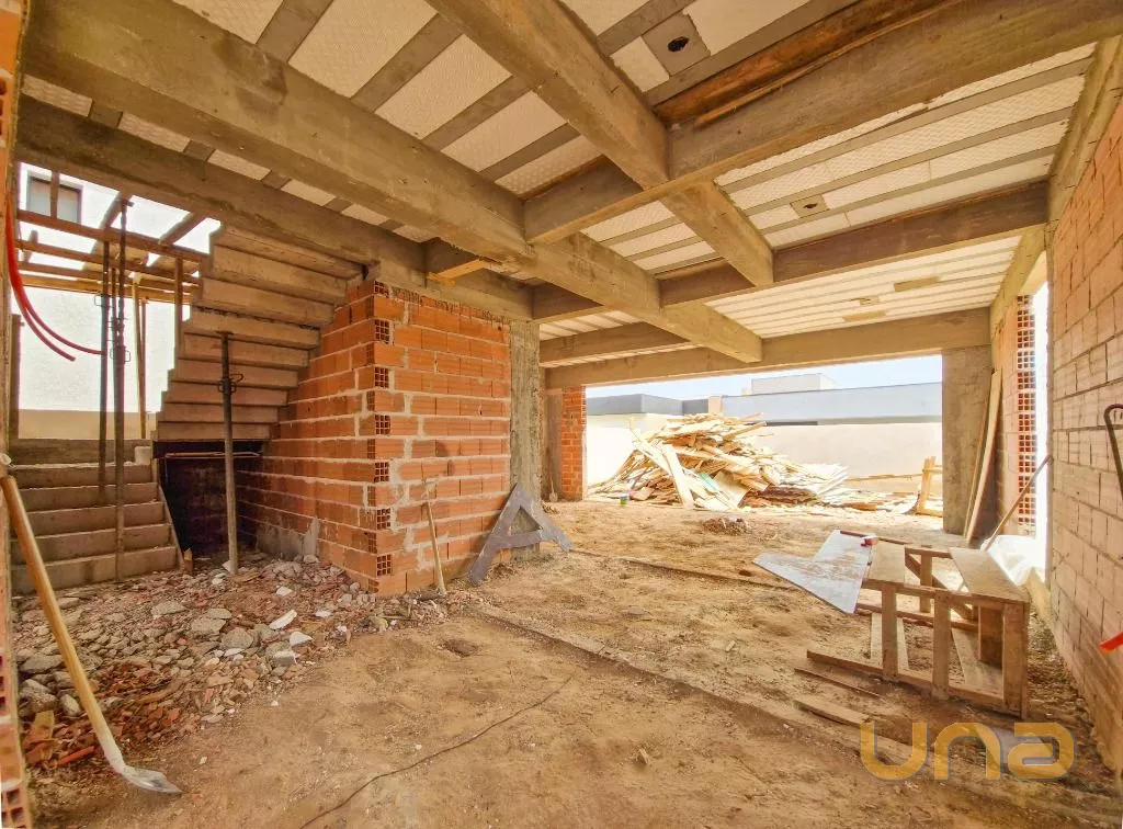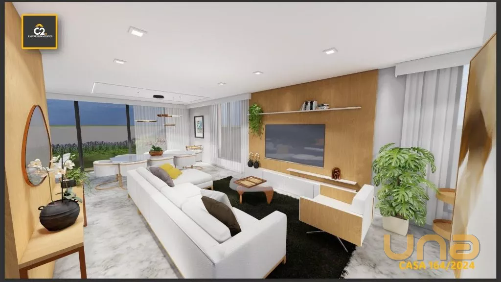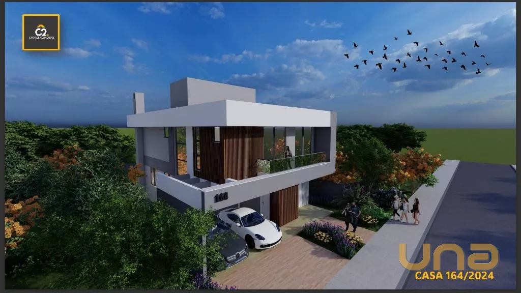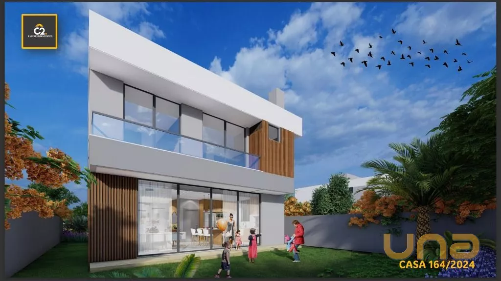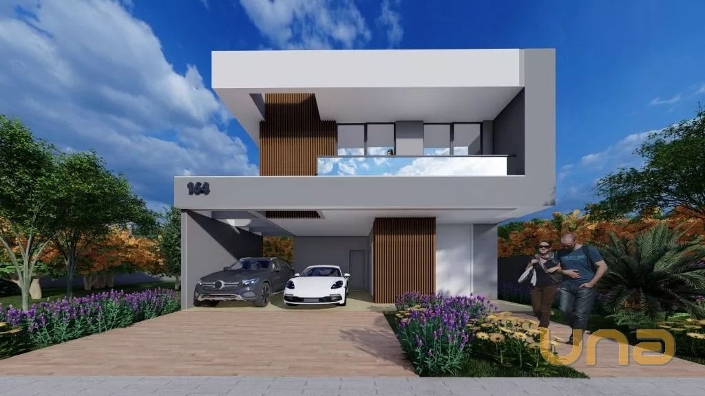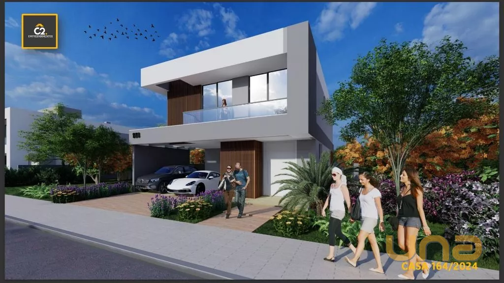 Casa de Condomínio em construção com 4 amplas suítes todas com sacada, projeto arquitetônico contemporâneo.