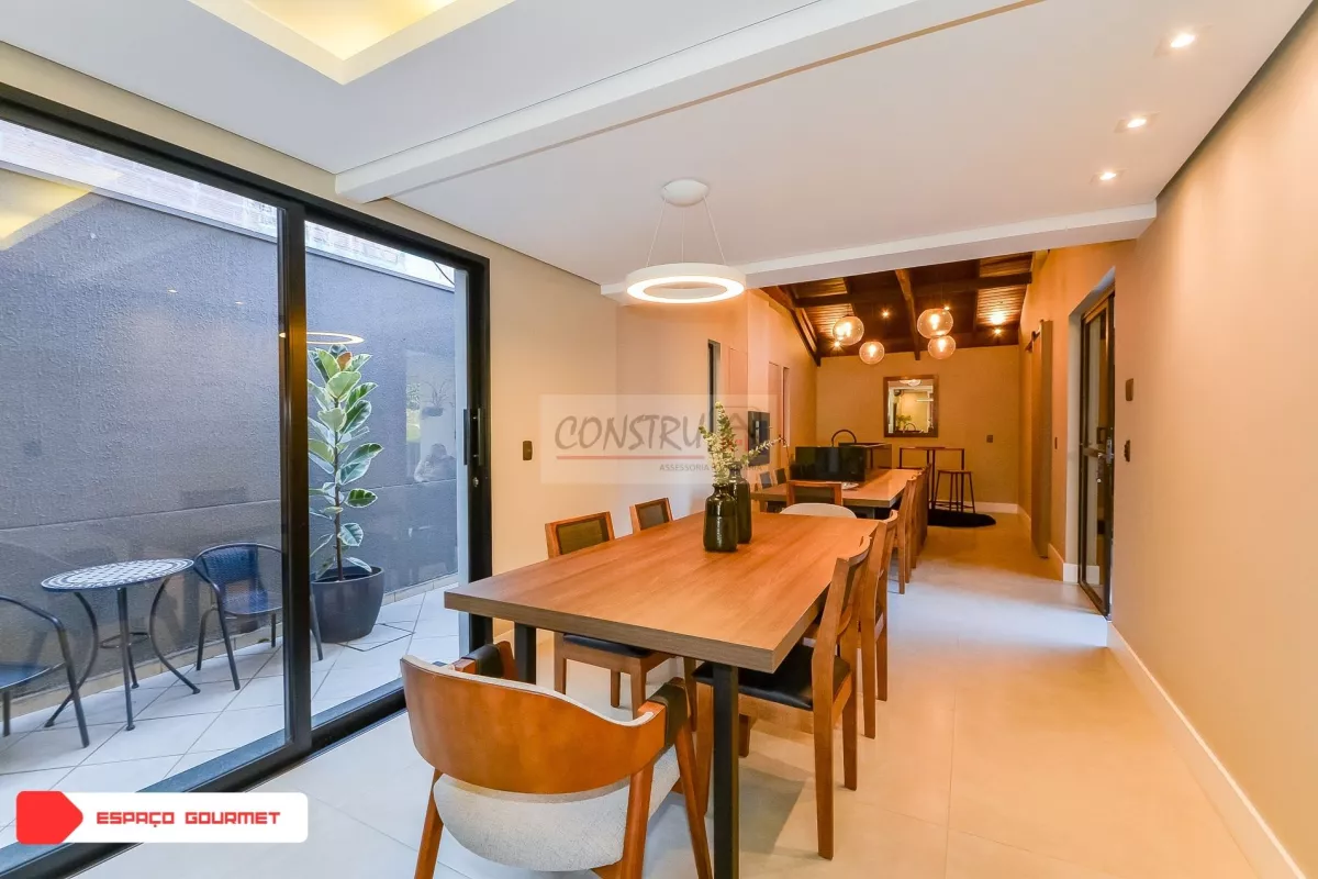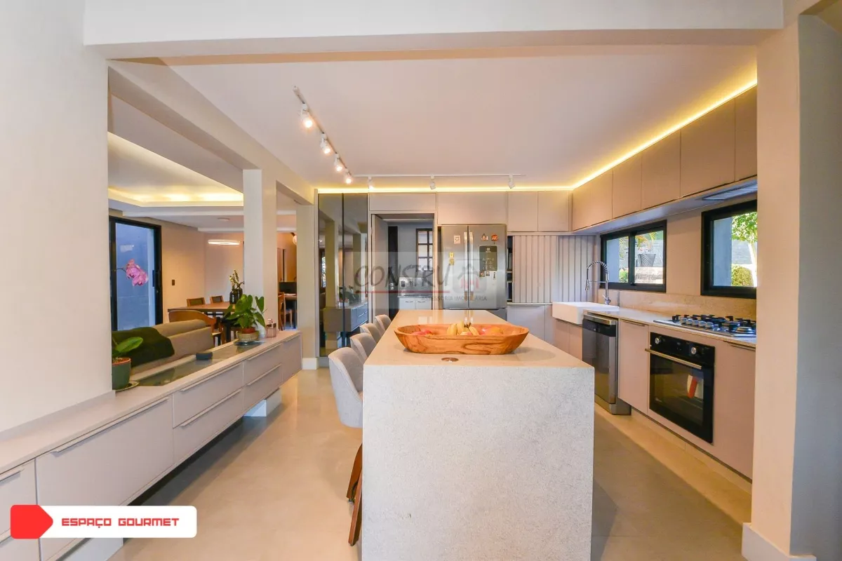 Cozinha gourmet integrada aos ambientes, espaço gourmet com churrasqueira a carvão (acomoda até 16 pessoas!) – perfeita para aniversários, almoços e encontros